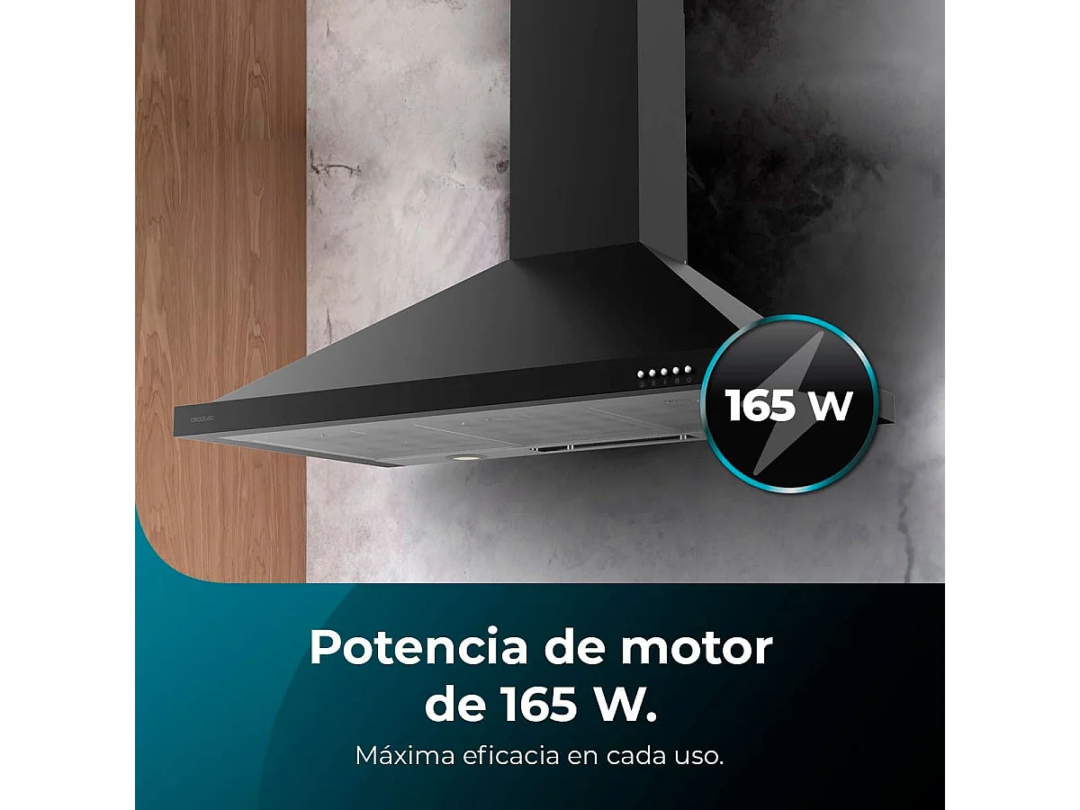 Campana piramidal Cecotec Bolero Flux PM 906500 Black A 165W negro 90 cm