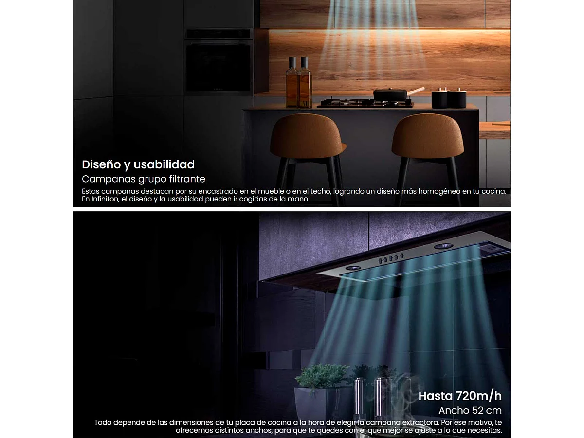 Campana tipo encastre Infiniton CMPG-527 145W 720m3/h A+ inox 52 cm