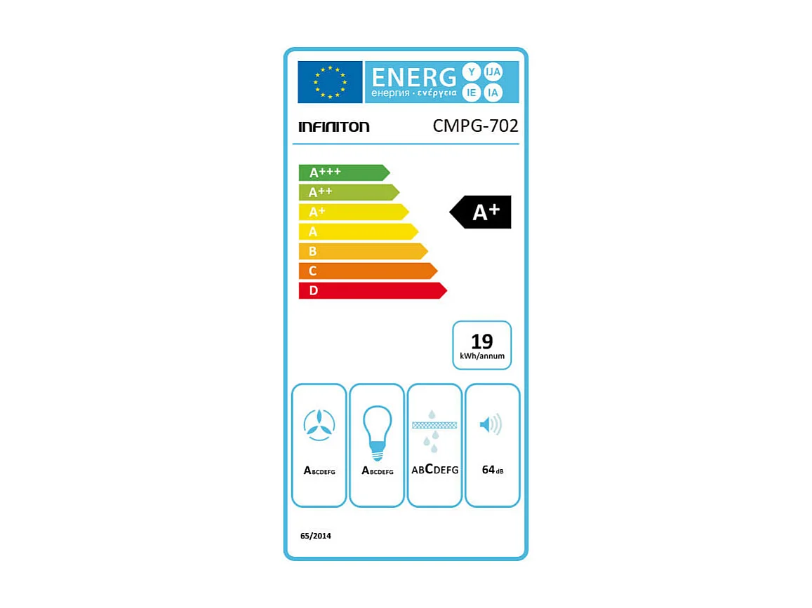 Campana tipo encastre Infiniton CMPG-702 145W 720m3/h 3 velocidades A+ inox 70 cm