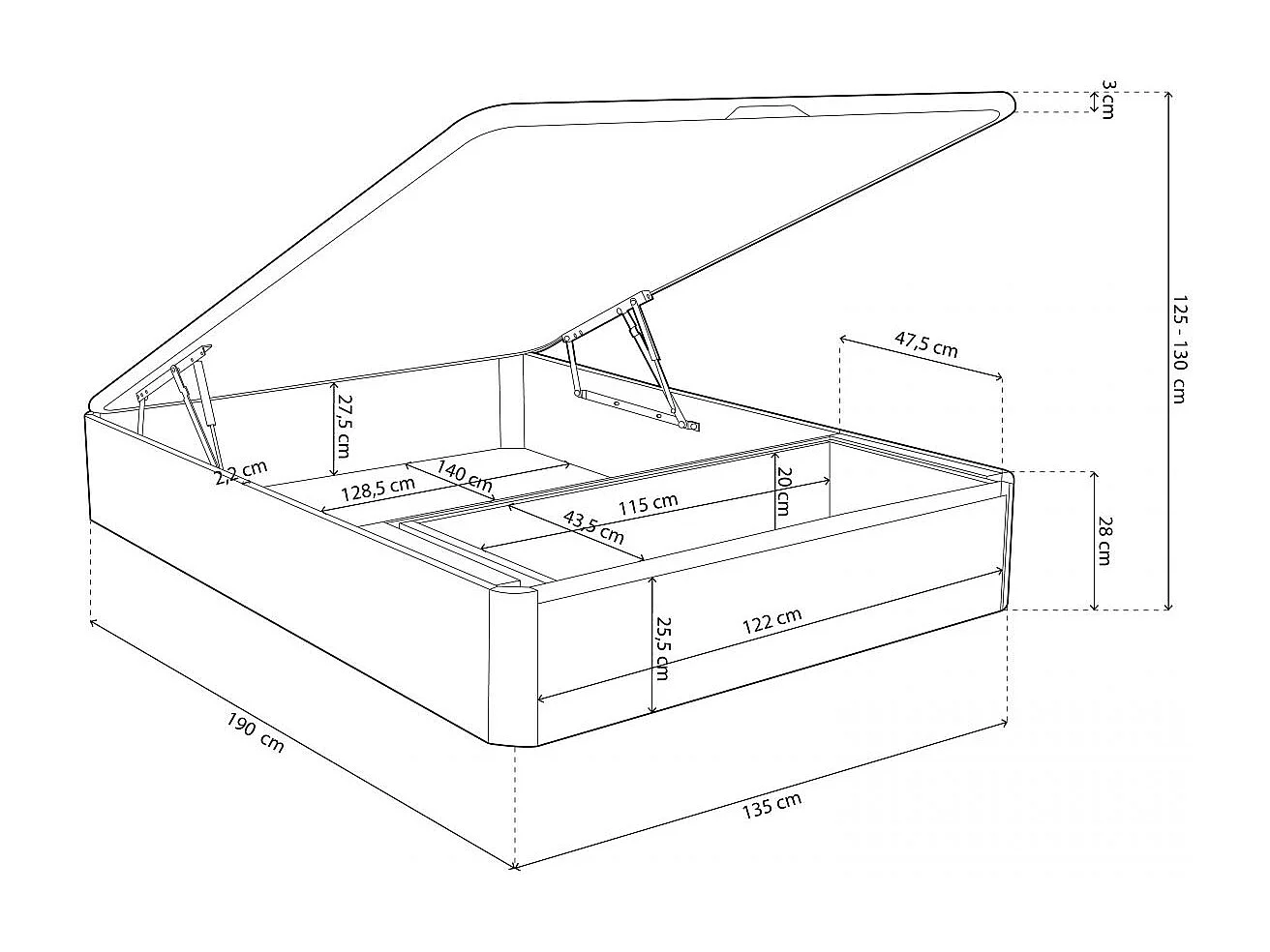 Canapé 135x190 Luxury Max 3D Cambrian - Grafito Roble - Grafito