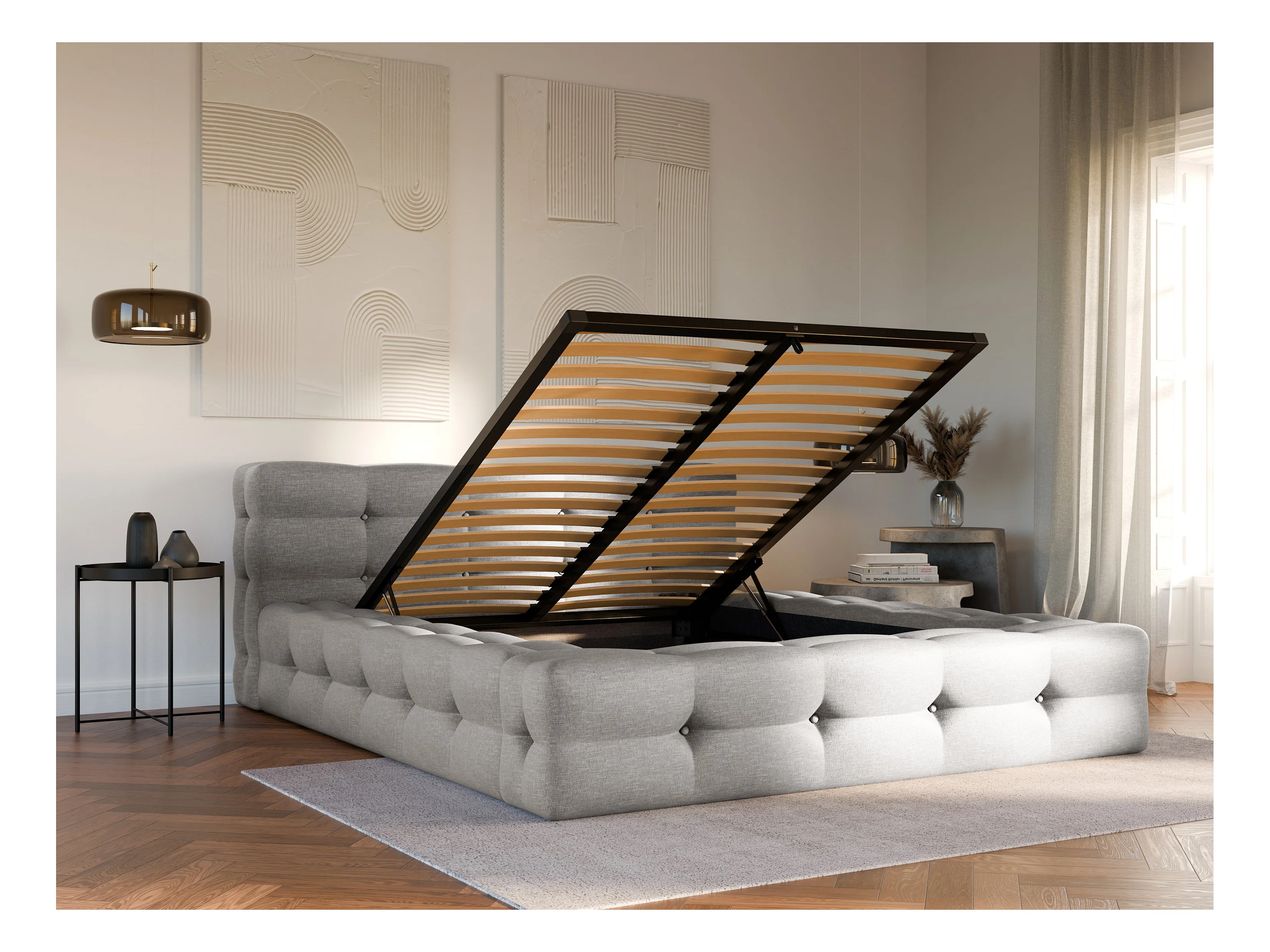 Canapé abatible capitoné 160 x 200 cm - Tela jaspeada - Gris claro + Colchón - LERUCO de Pascal Morabito