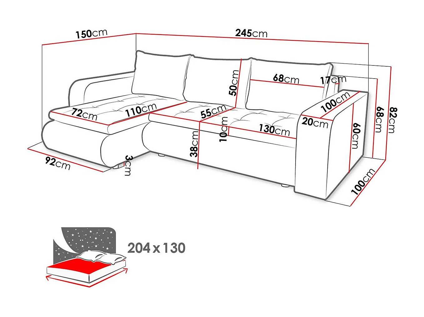 Sofá de esquina izquierda convertible "Brooklyn" con almacenamiento - Gris Blanco - 3 plazas