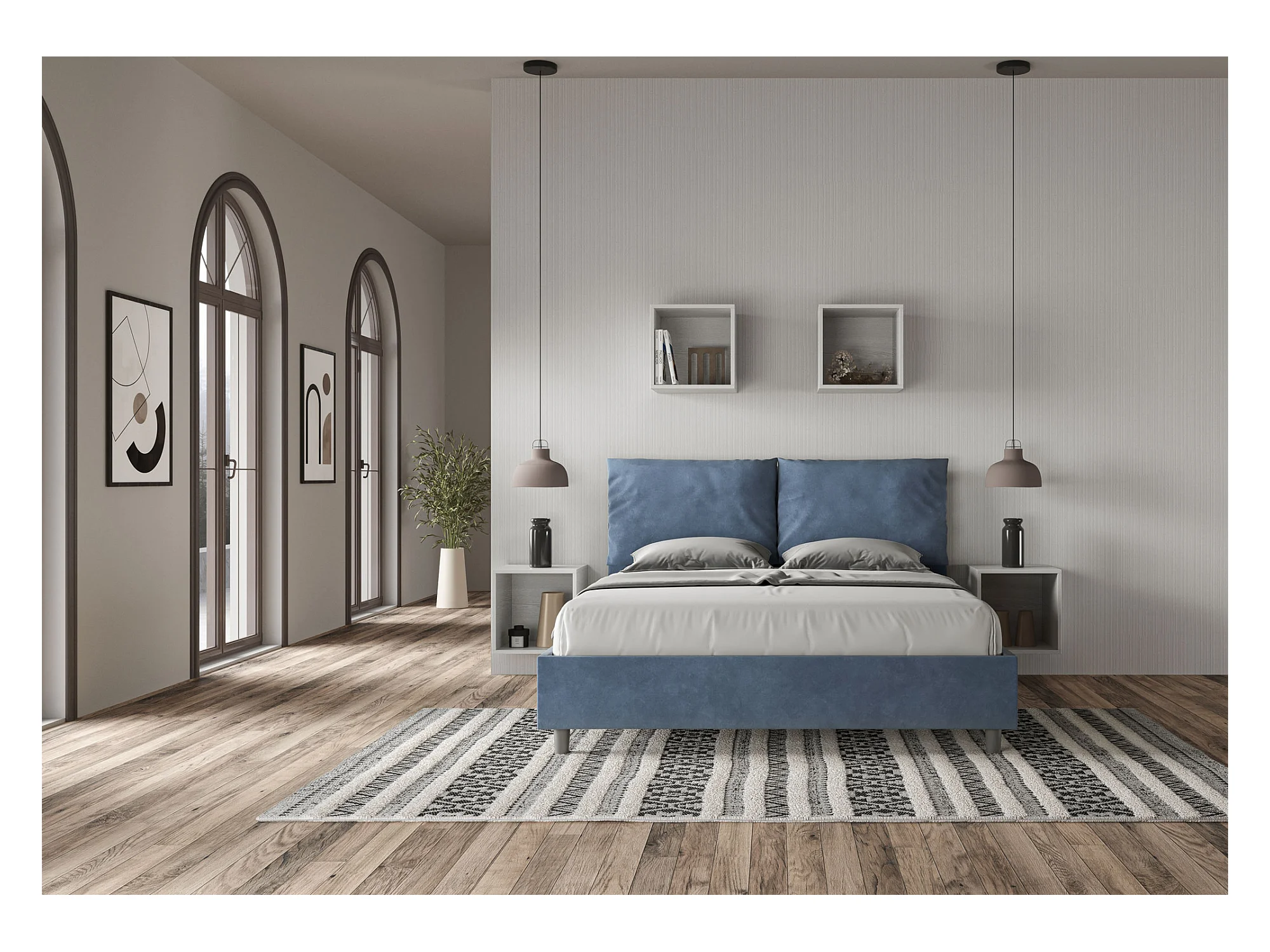 Cama contenedor doble tapizada 160x190 en microfibra azul Appia