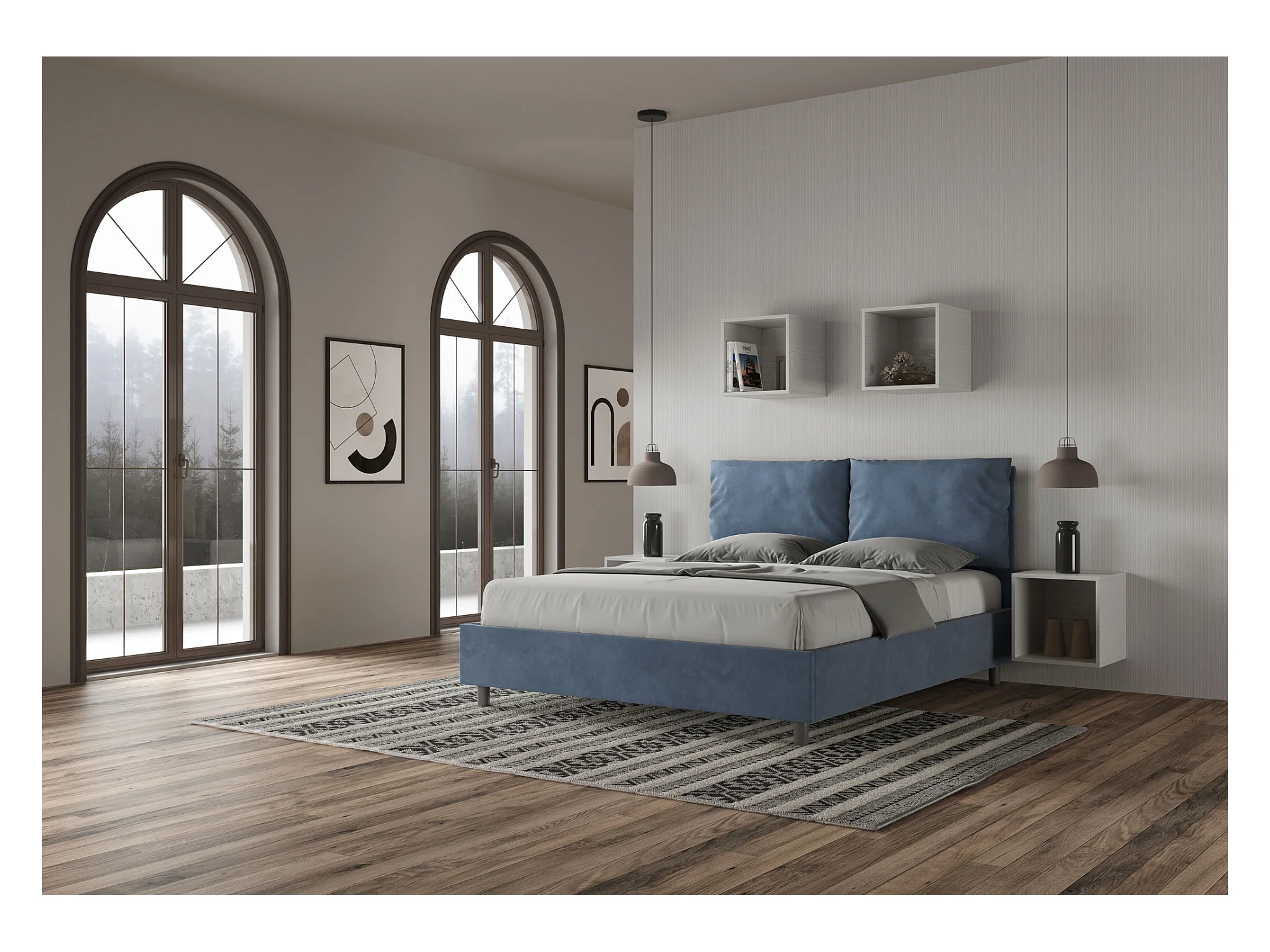 Cama contenedor doble tapizada 160x190 en tela Era 09 azul Arla