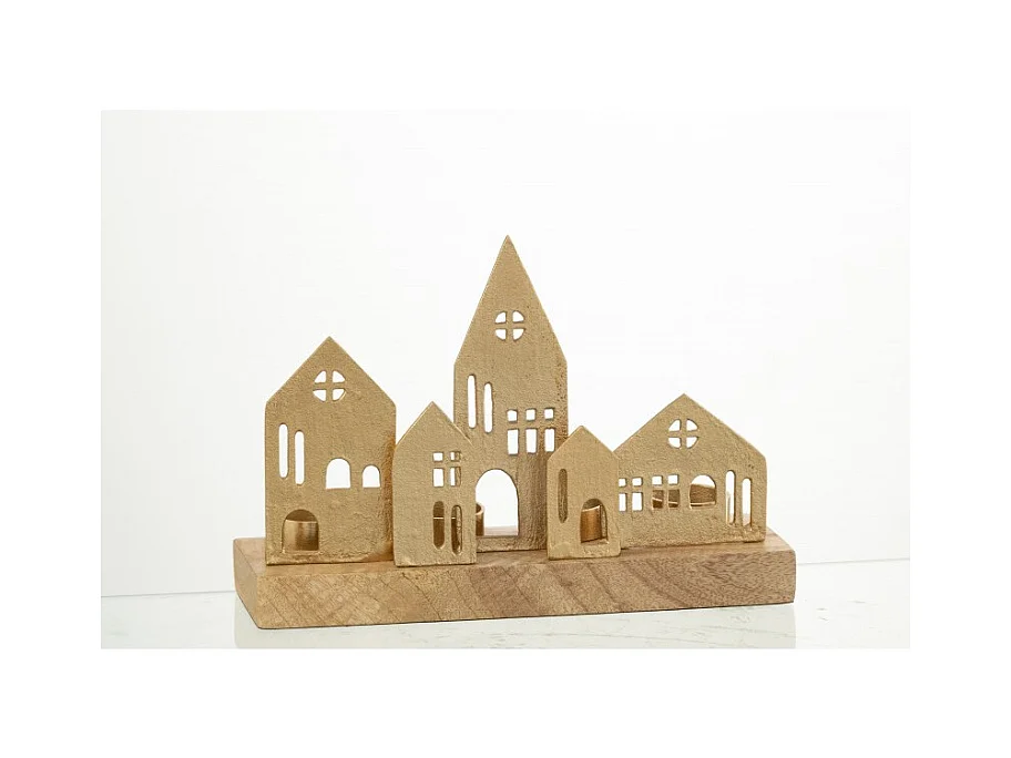 Candelabro de árbol de Navidad en aluminio dorado de 30x9x20cm