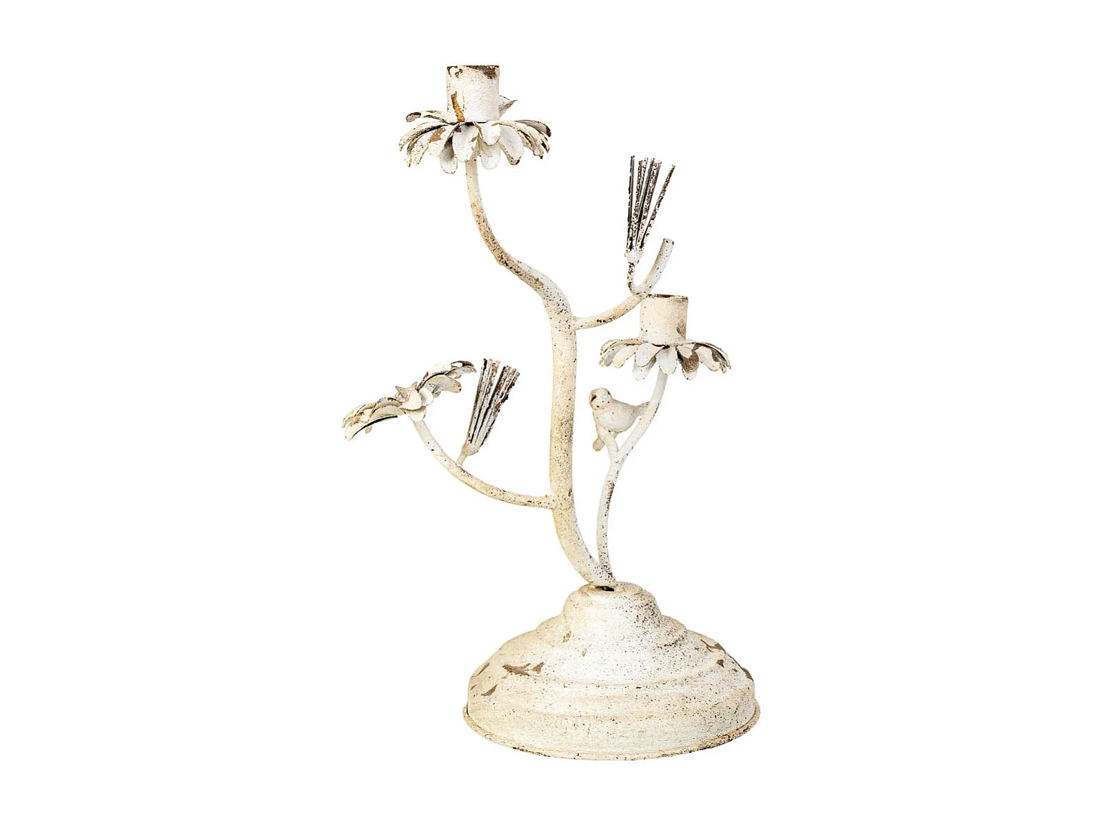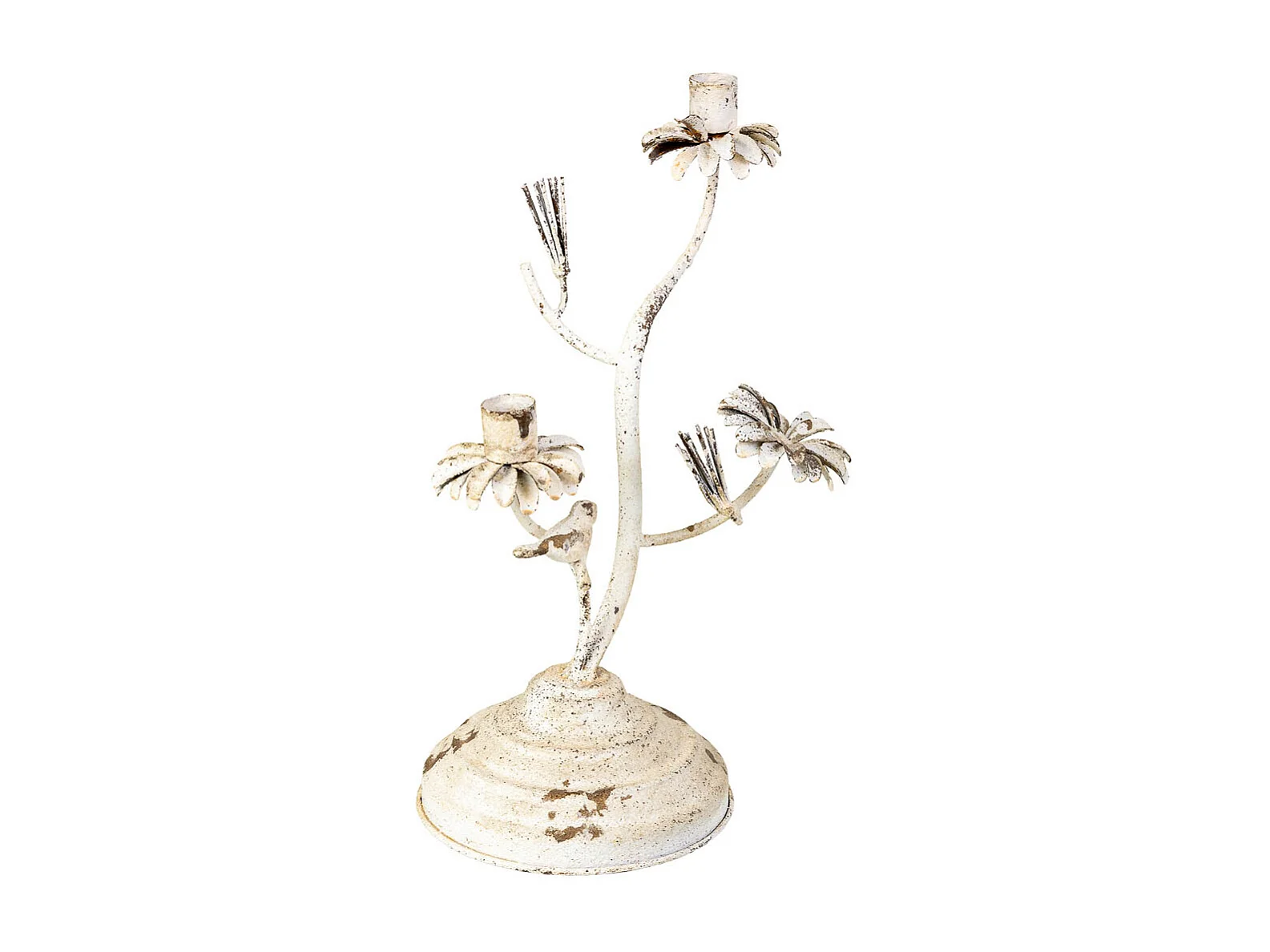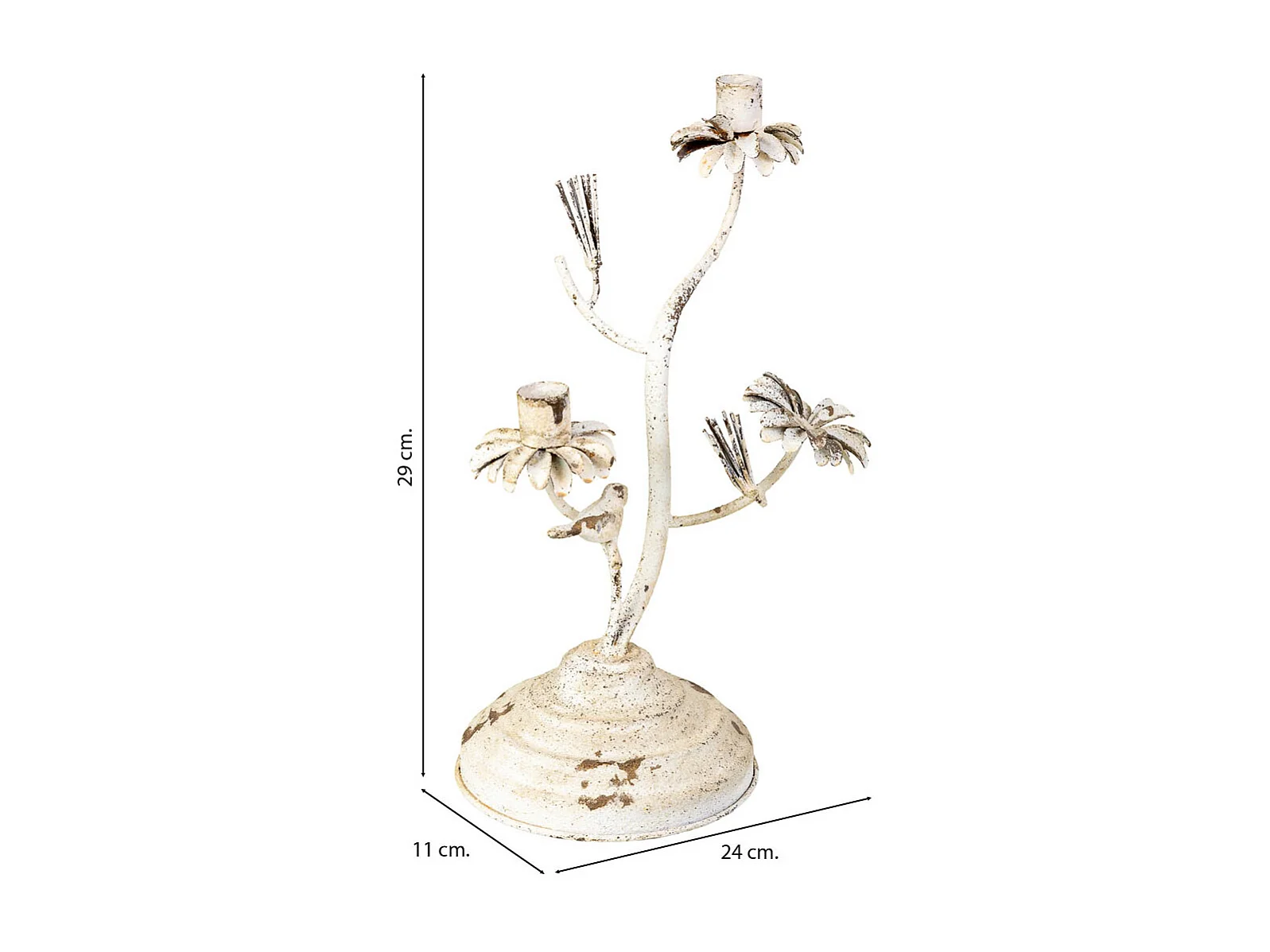 Candelabro de pie de metal envejecido blanco 35x35x110h cm