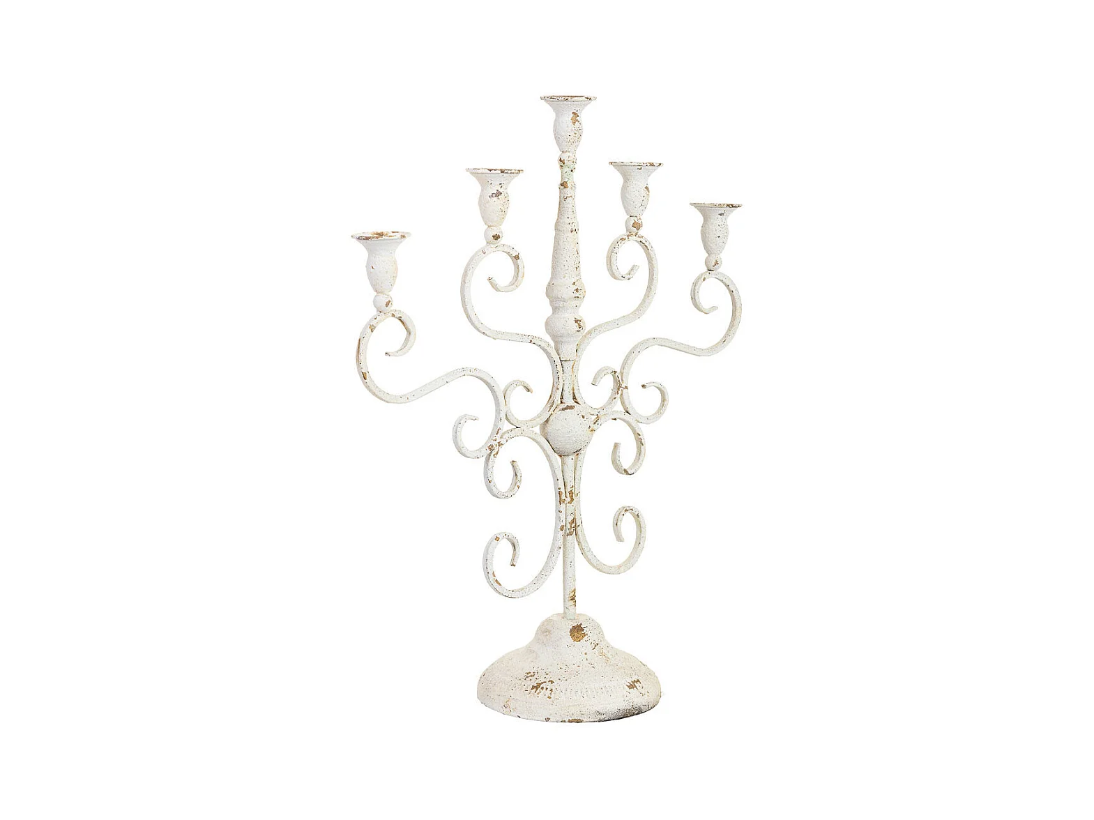 Candelabro de pie de metal envejecido blanco 35x35x110h cm