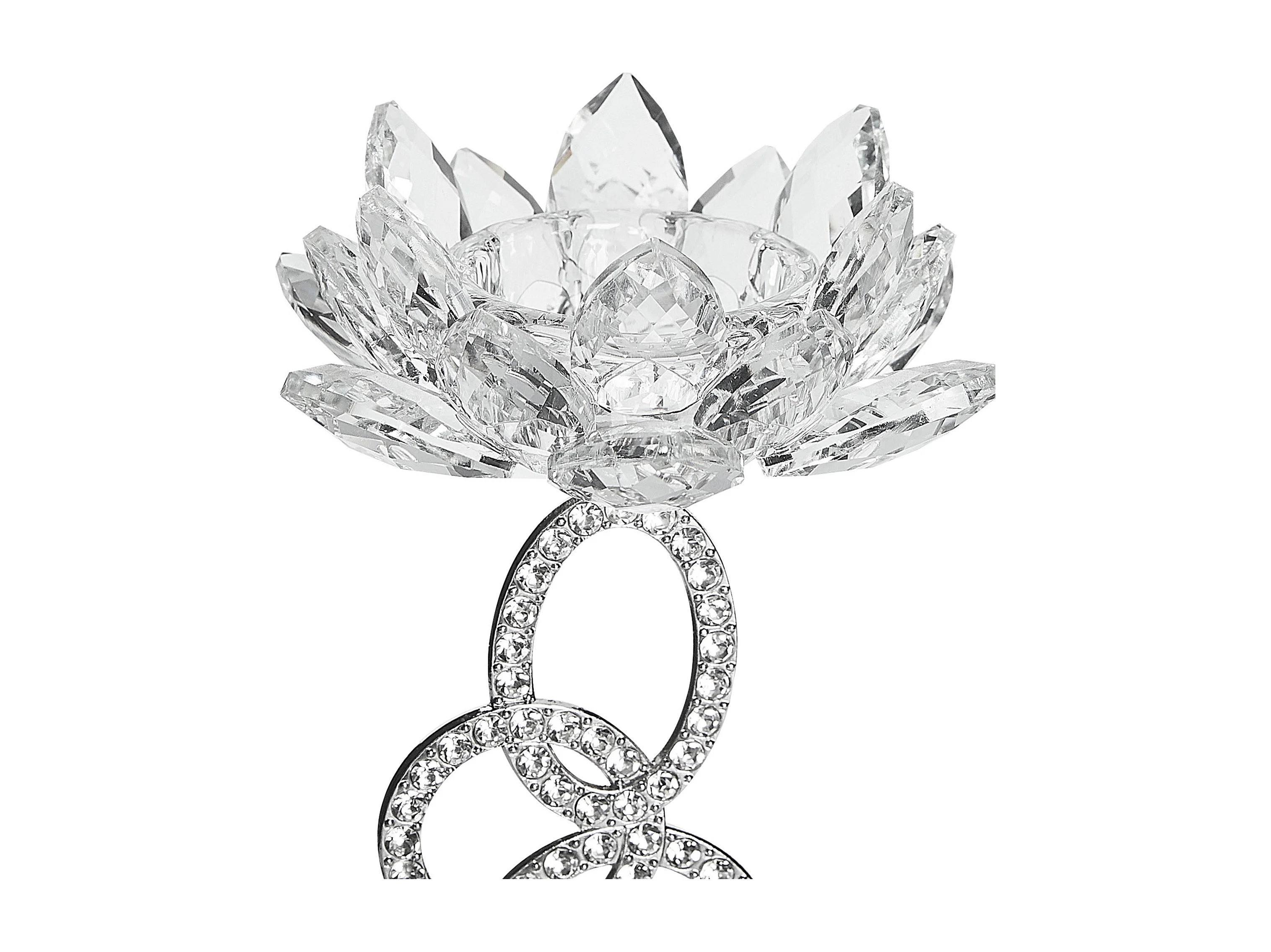 Portavelas hoja redondo cristal plata Alt. 31 cm