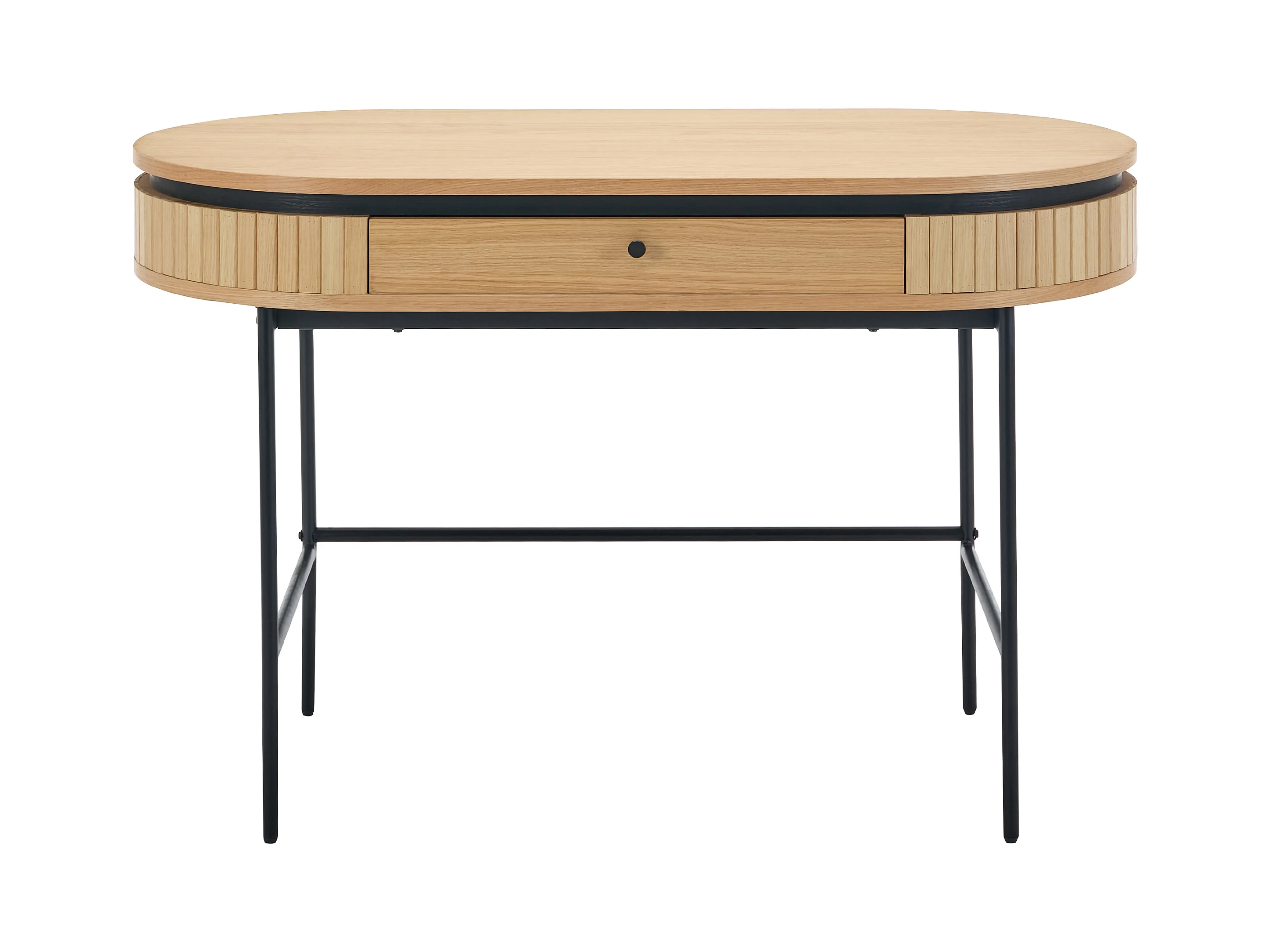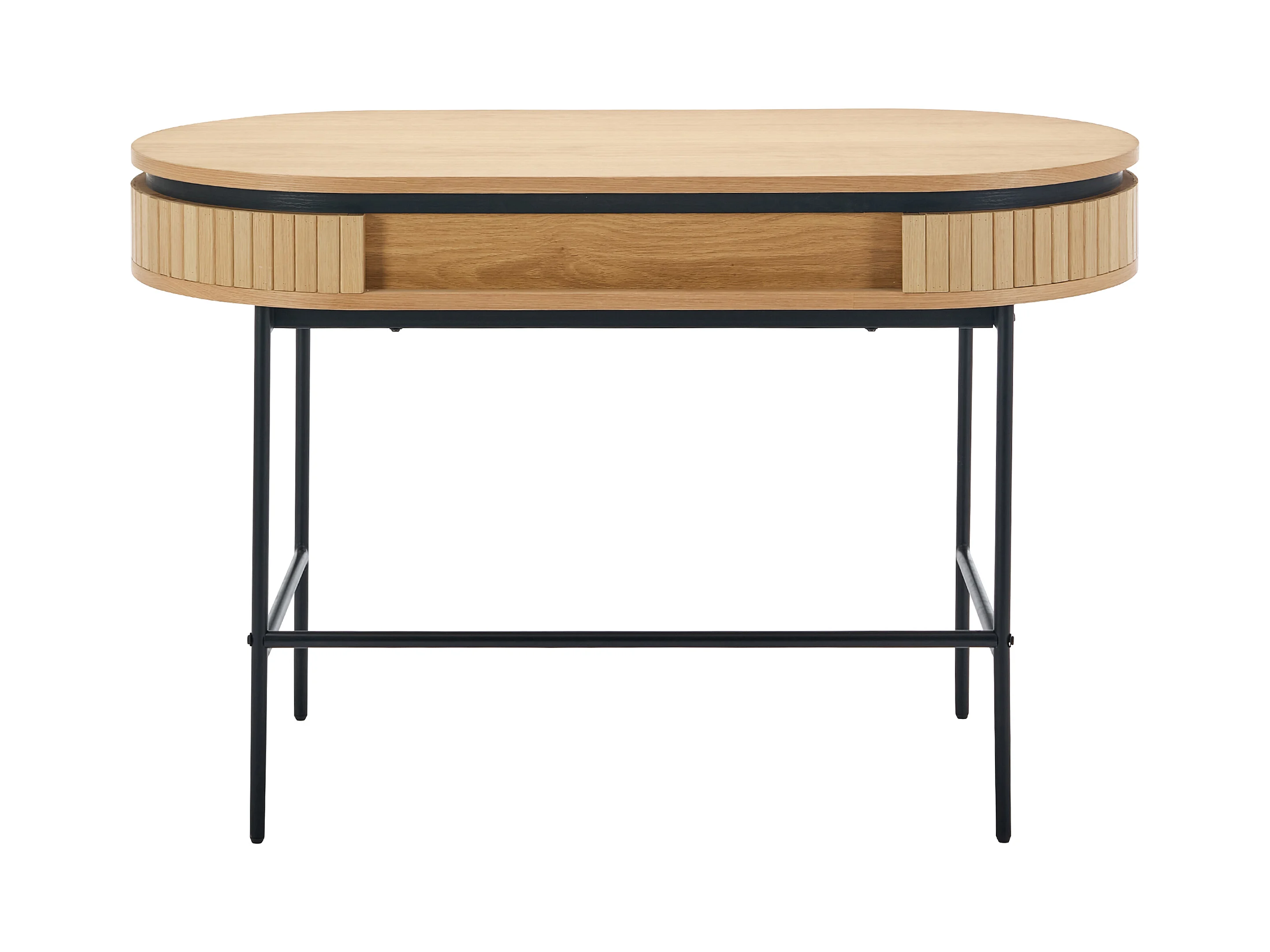 Escritorio con 1 cajón - Chapado en roble - Color: Natural y negro - CARDIONA