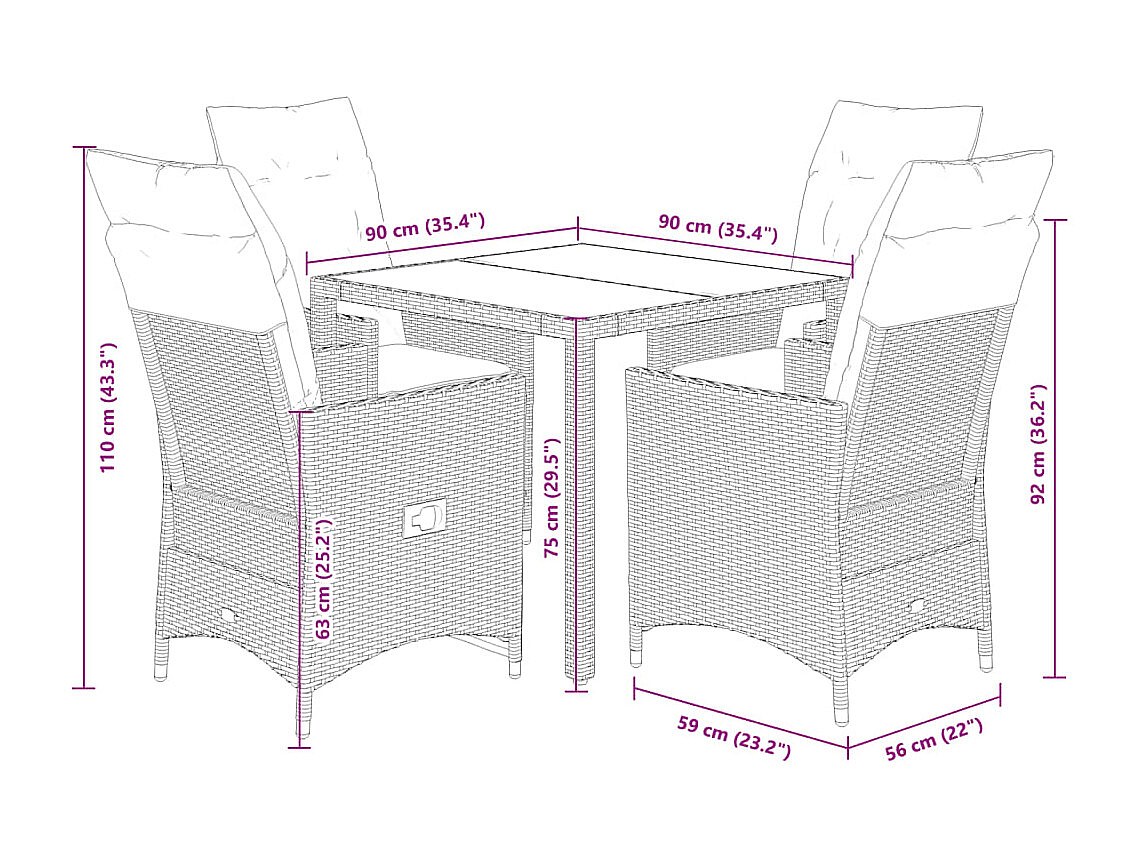 Les Mureaux Set de comedor jardín 5 pzas con cojines ratán PE acacia negro