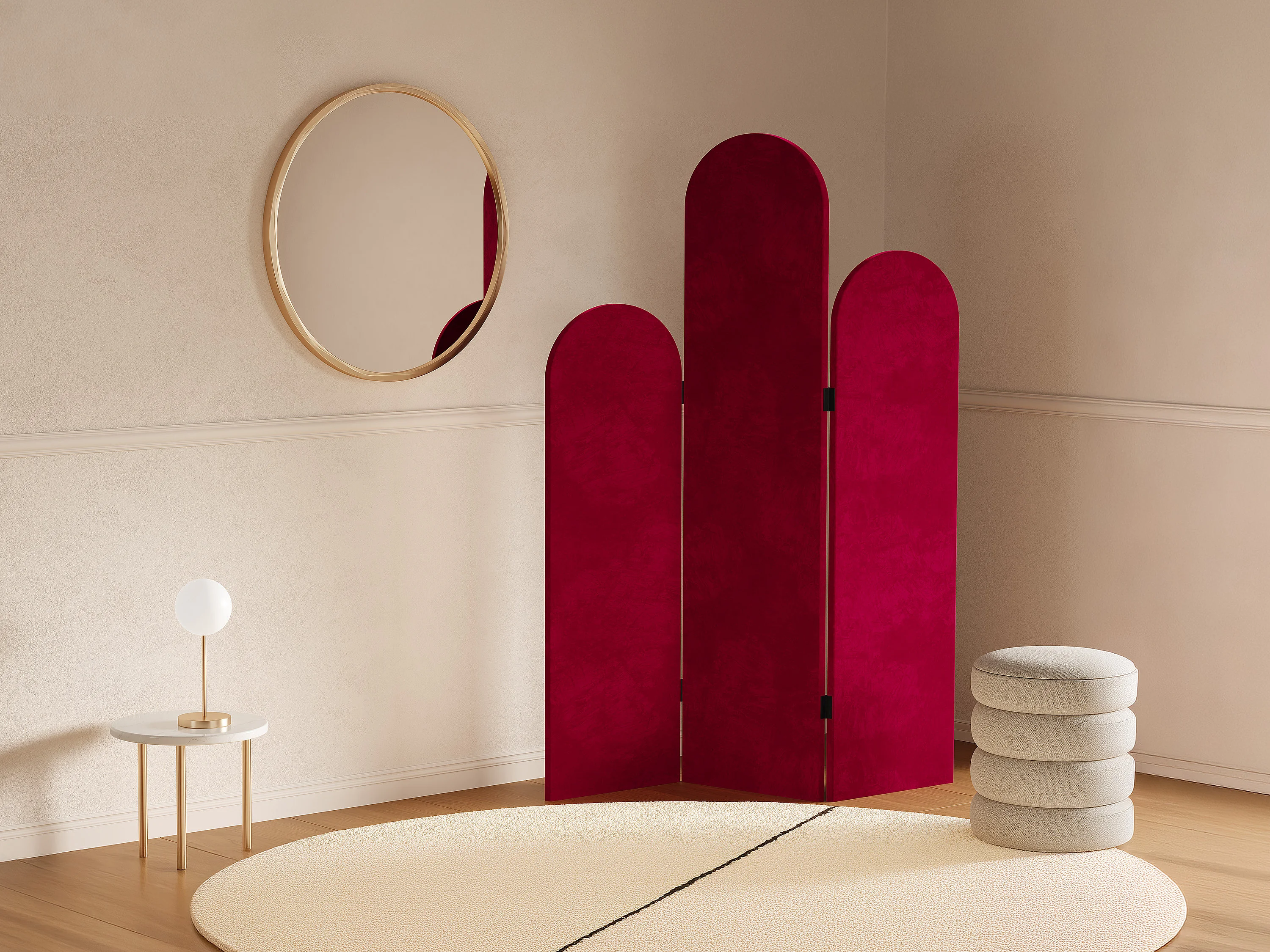 Biombo asimétrico 3 paneles de terciopelo - An. 120 x Alt. 180 cm - Rojo - CARMIDA