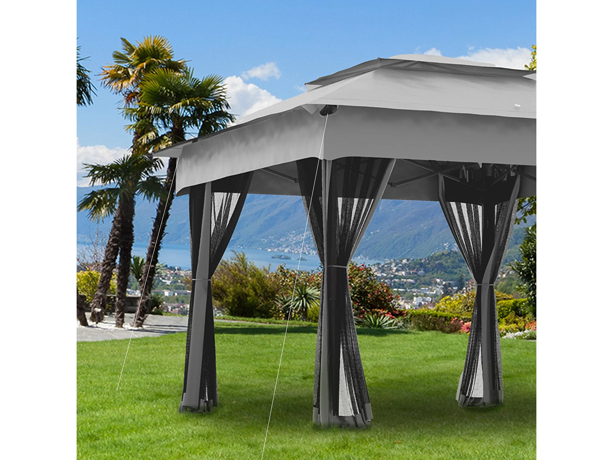Carpa Baguo Outsunny plegable 4 mosquiteras gris claro 270x325x325 cm