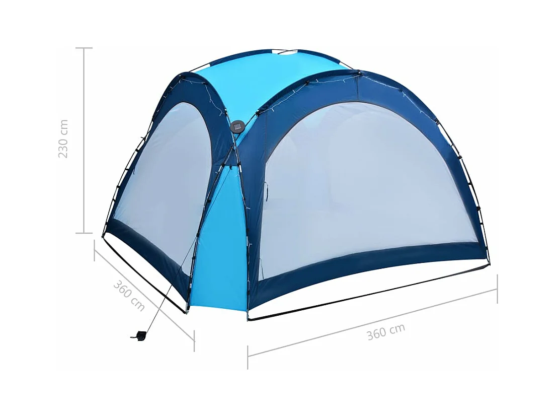 Carpa de fiesta con LED y 4 paredes laterales azul 3,6x3,6x2,3m