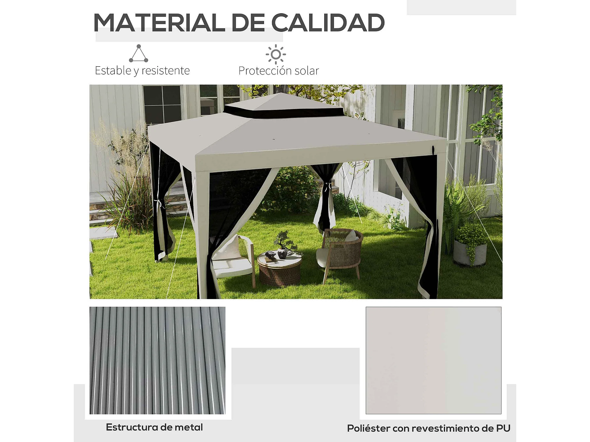 Cenador Girasol Outsunny mosquiteras laterales beige 268x297x297 cm