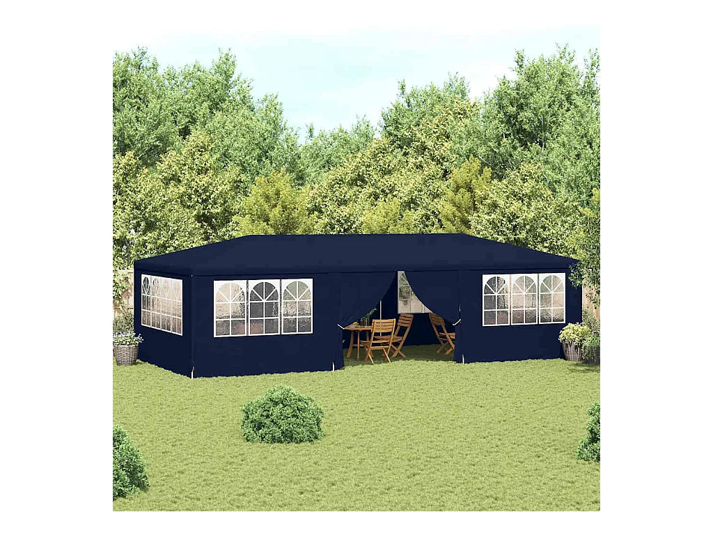Carpa para fiestas con 8 paredes laterales de malla Azul 3x9 m HDPE