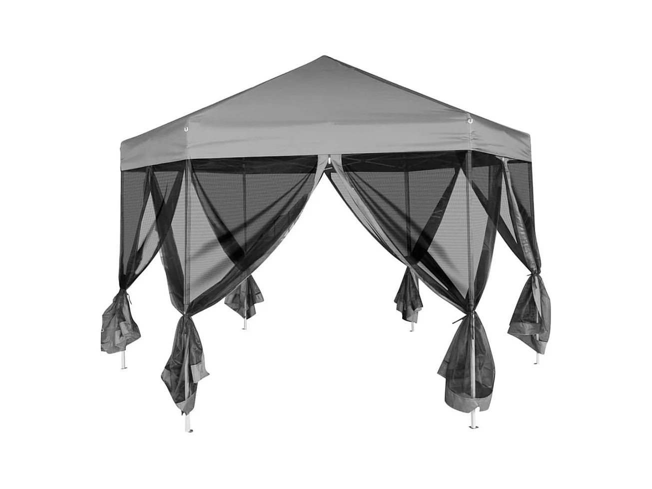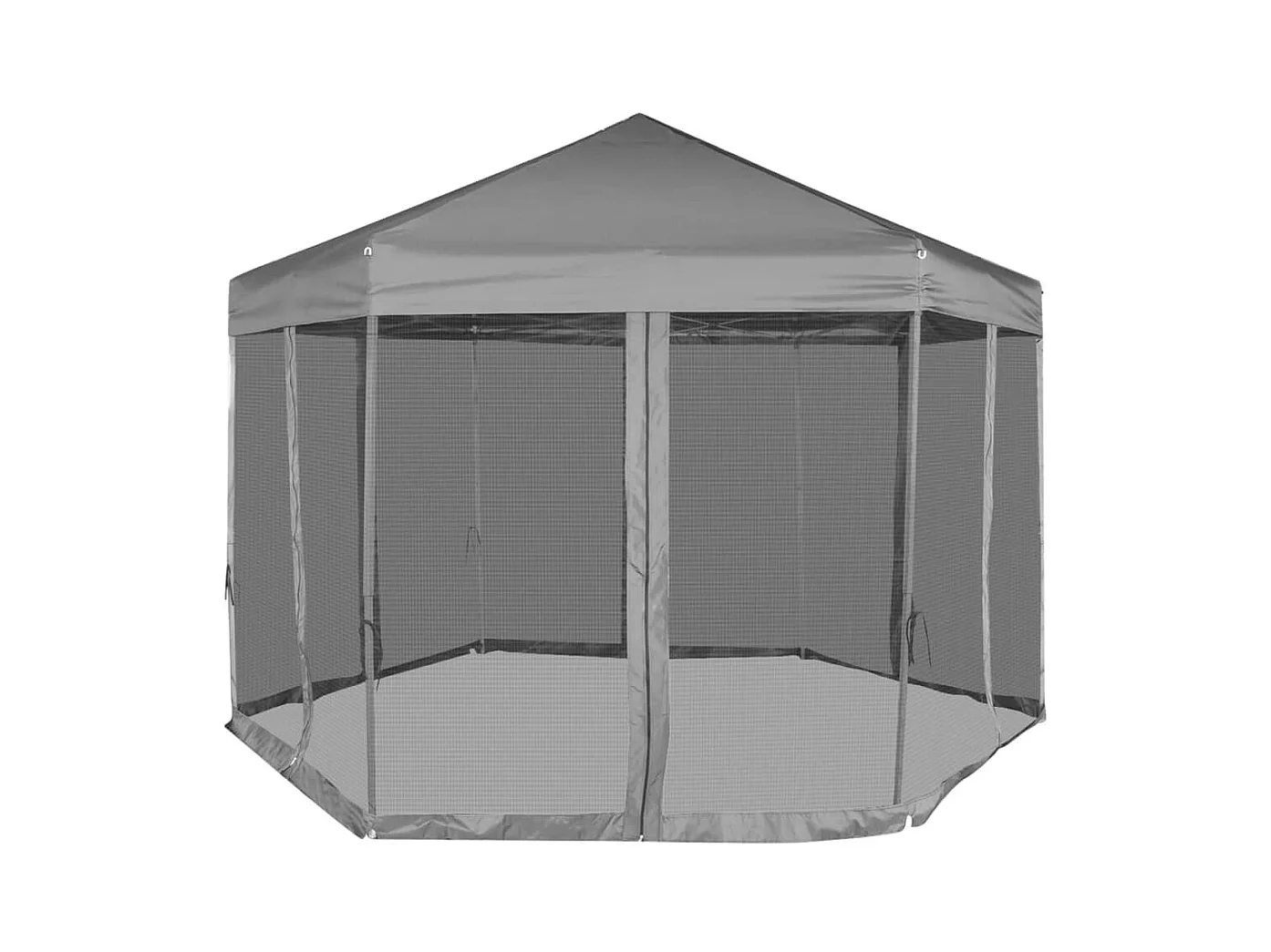 Carpa desplegable hexagonal 6 paredes laterales gris 3,6x3,1 m