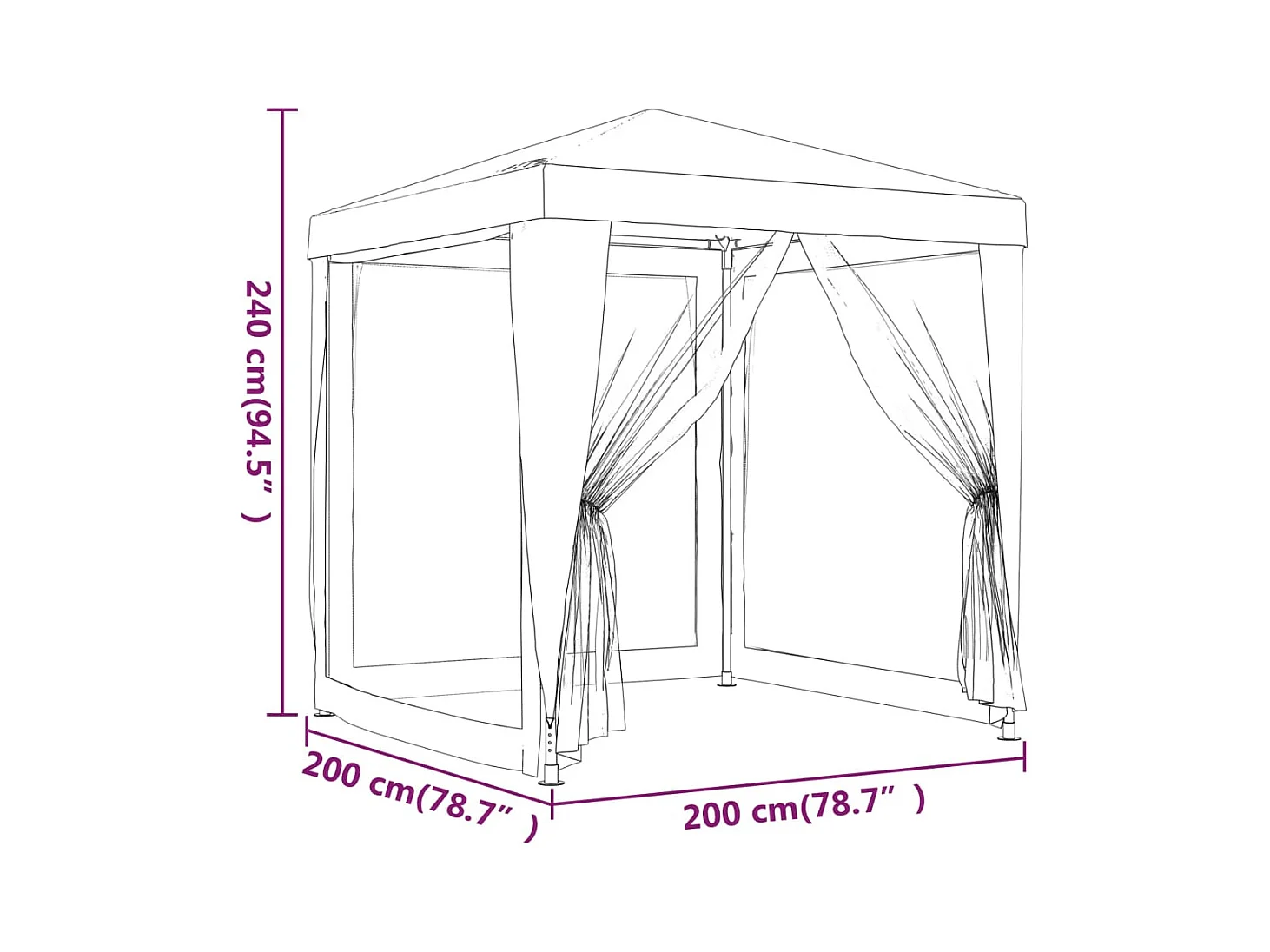 Carpa para fiestas con 4 paredes laterales de malla Verde 2x2 m HDPE