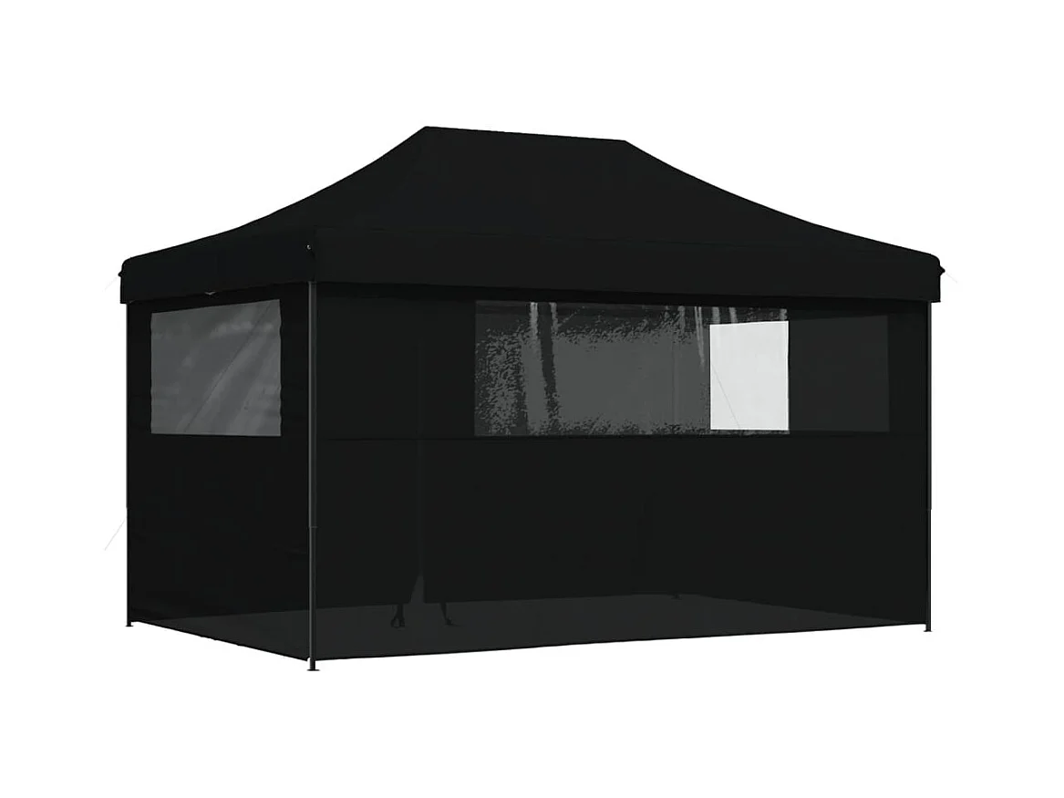 Carpa de recepción plegable emergente negra con 2 paredes laterales