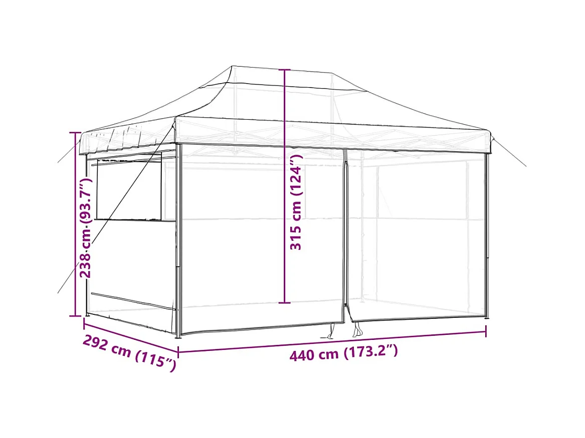 Carpa de recepción plegable negra 440x292x315 cm