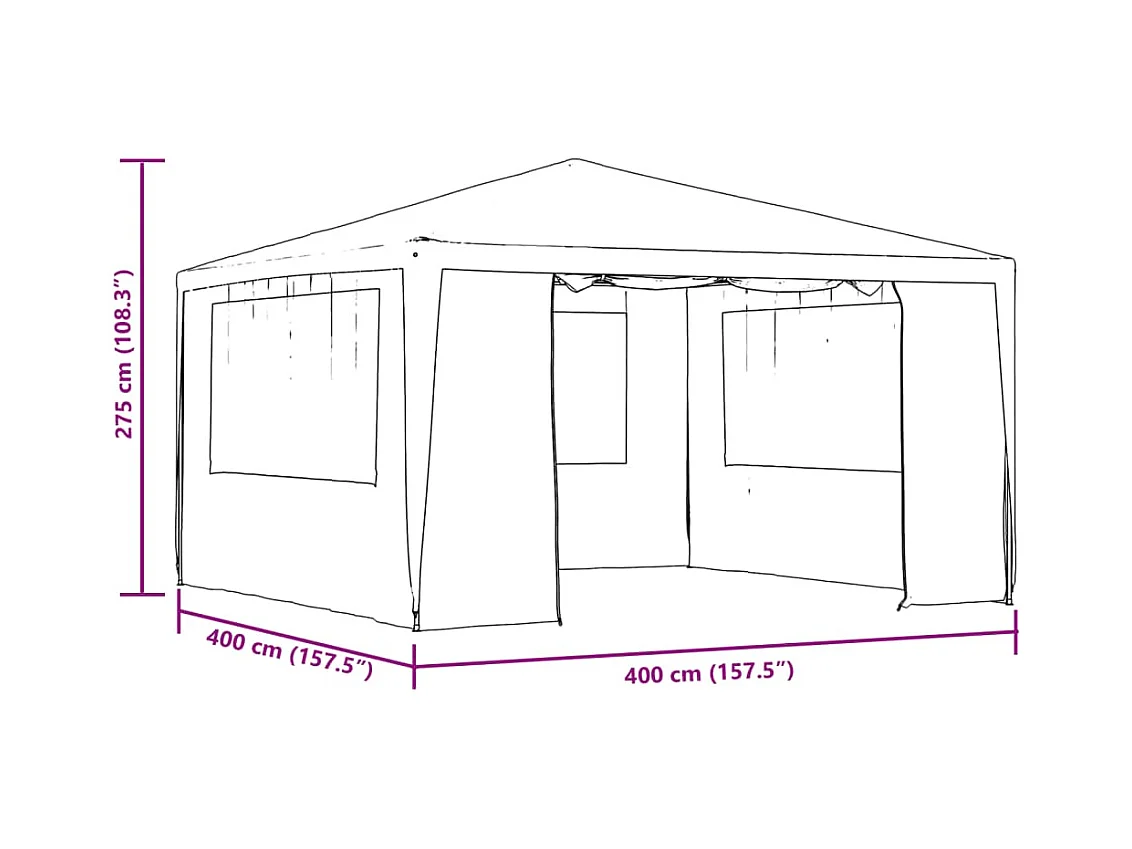 Carpa profesional para fiestas con paredes gris 90 g/m² 4x4 m