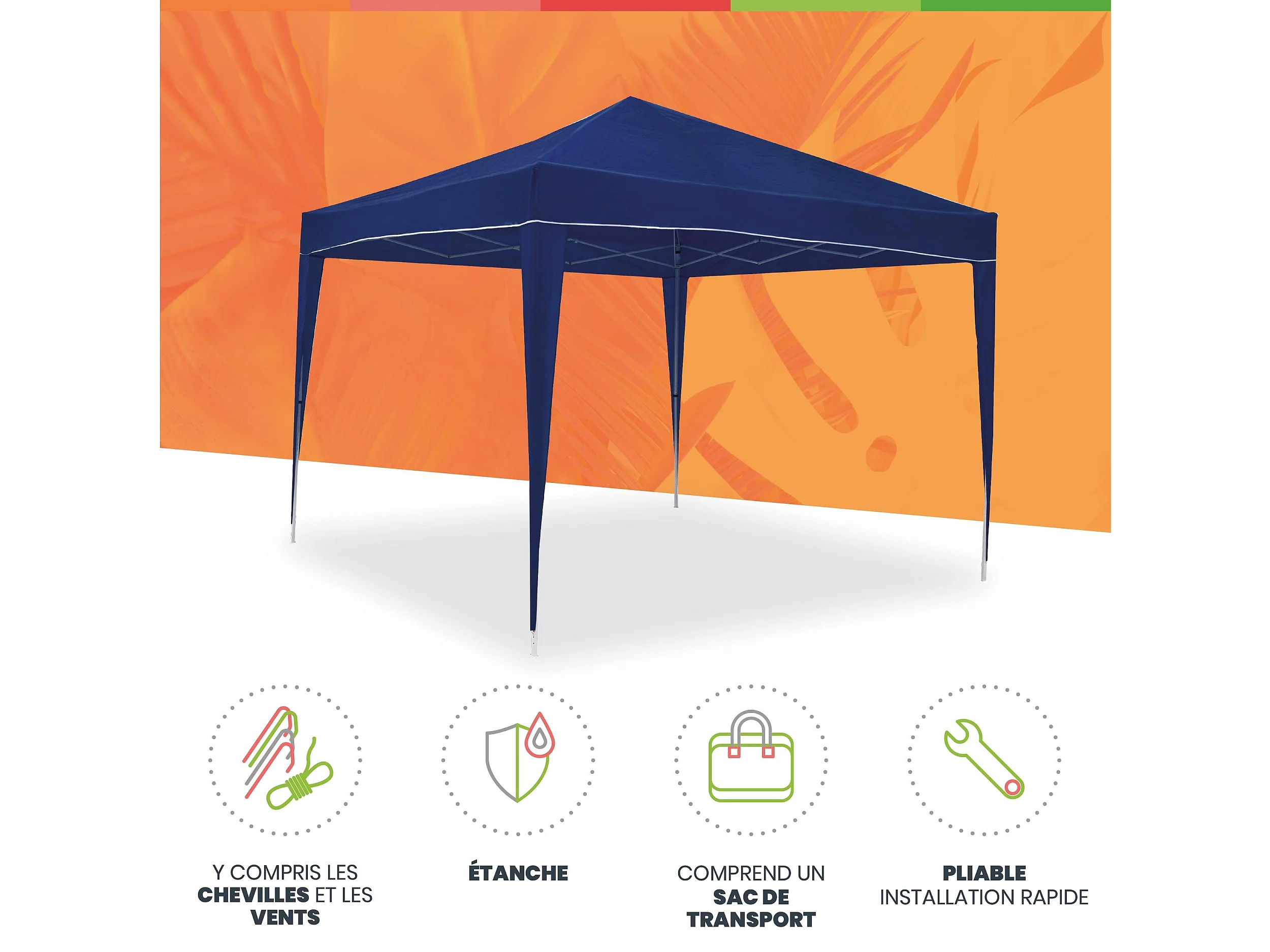 Wasabi - Carpa Plegable 3x3 m Classic Azul – Resistente al Agua – Vientos y Piquetas Fijación – Estructura de Acero – Cenador Jardín – Exteriores Camping Fiestas