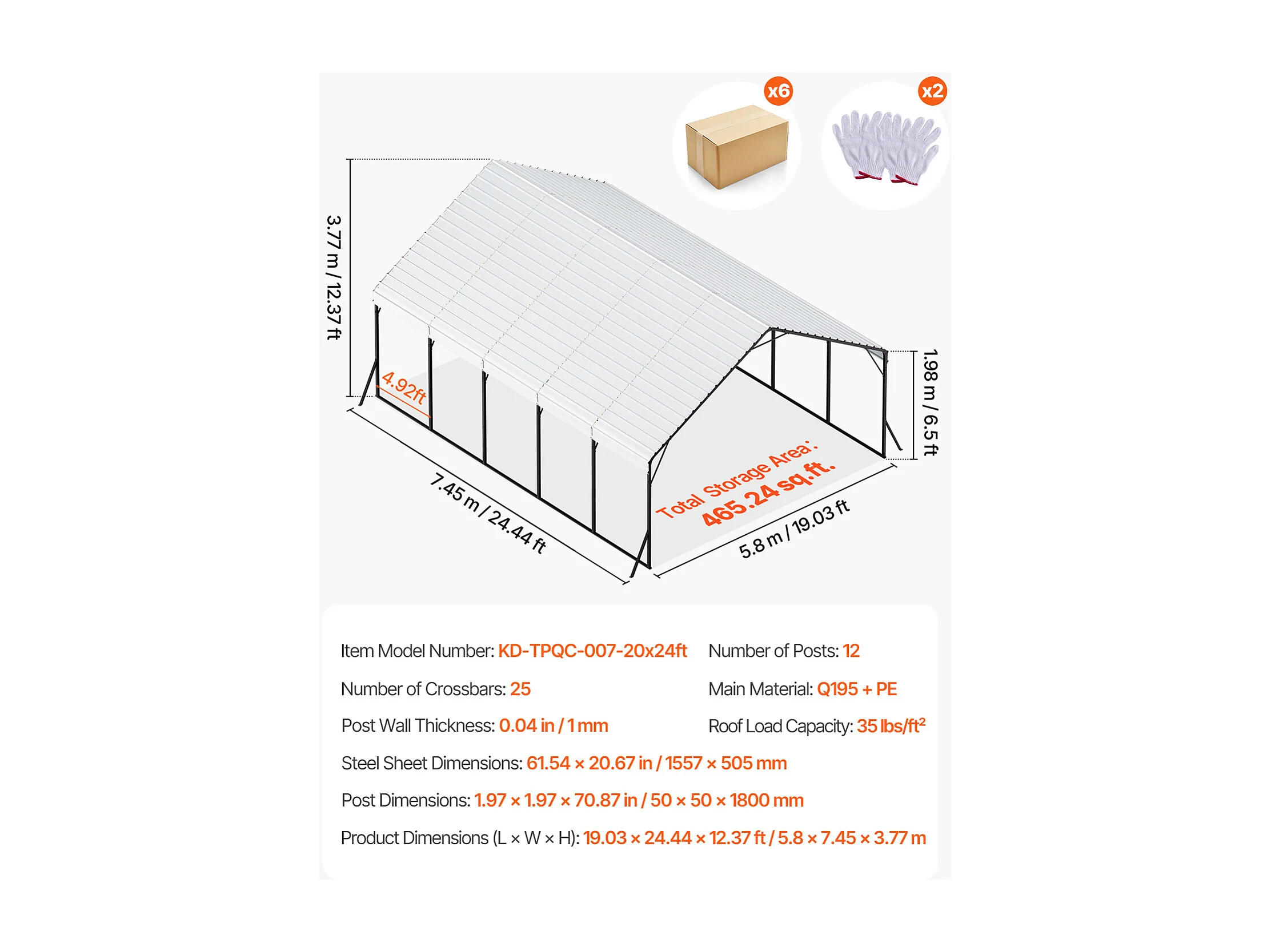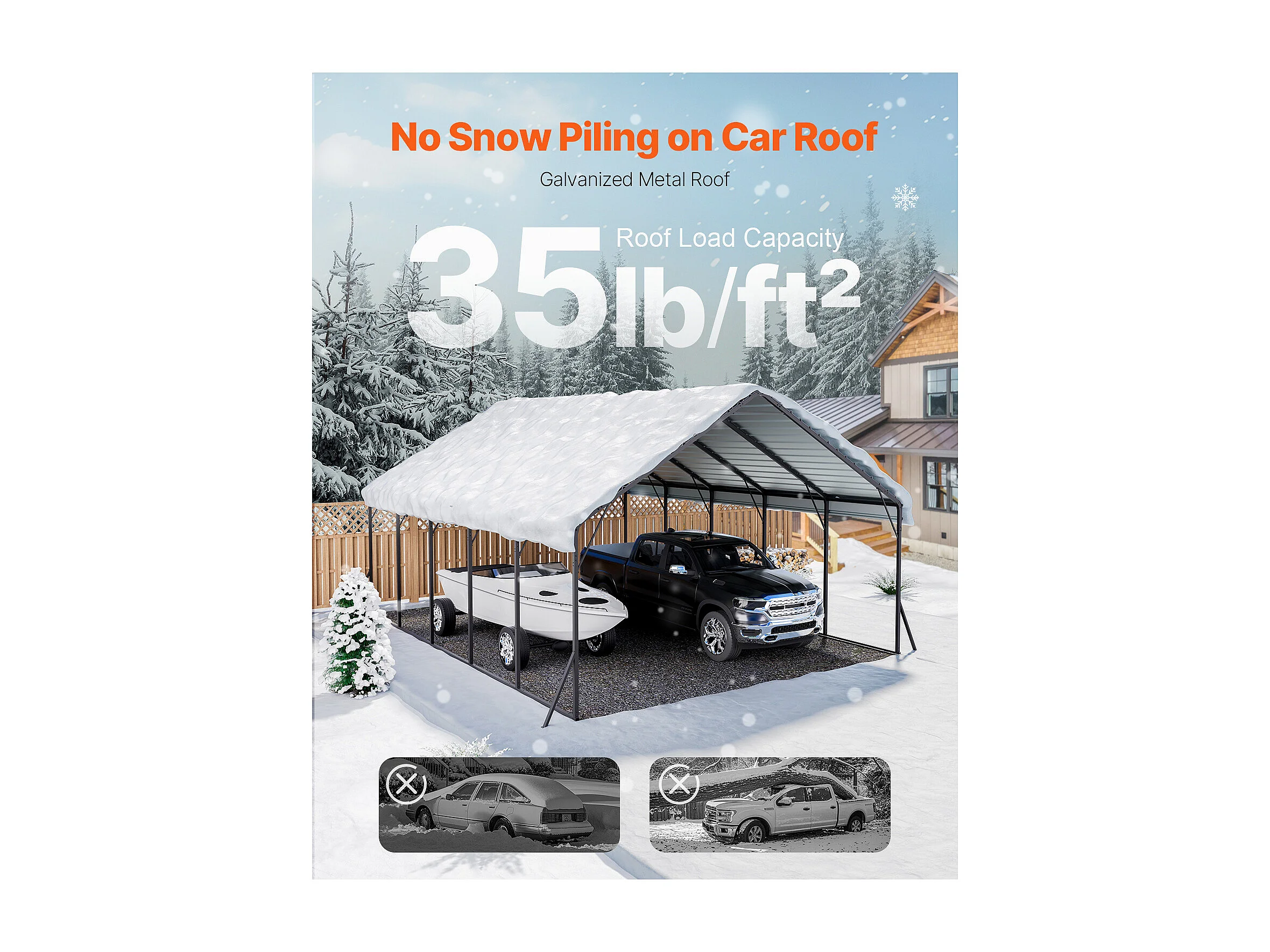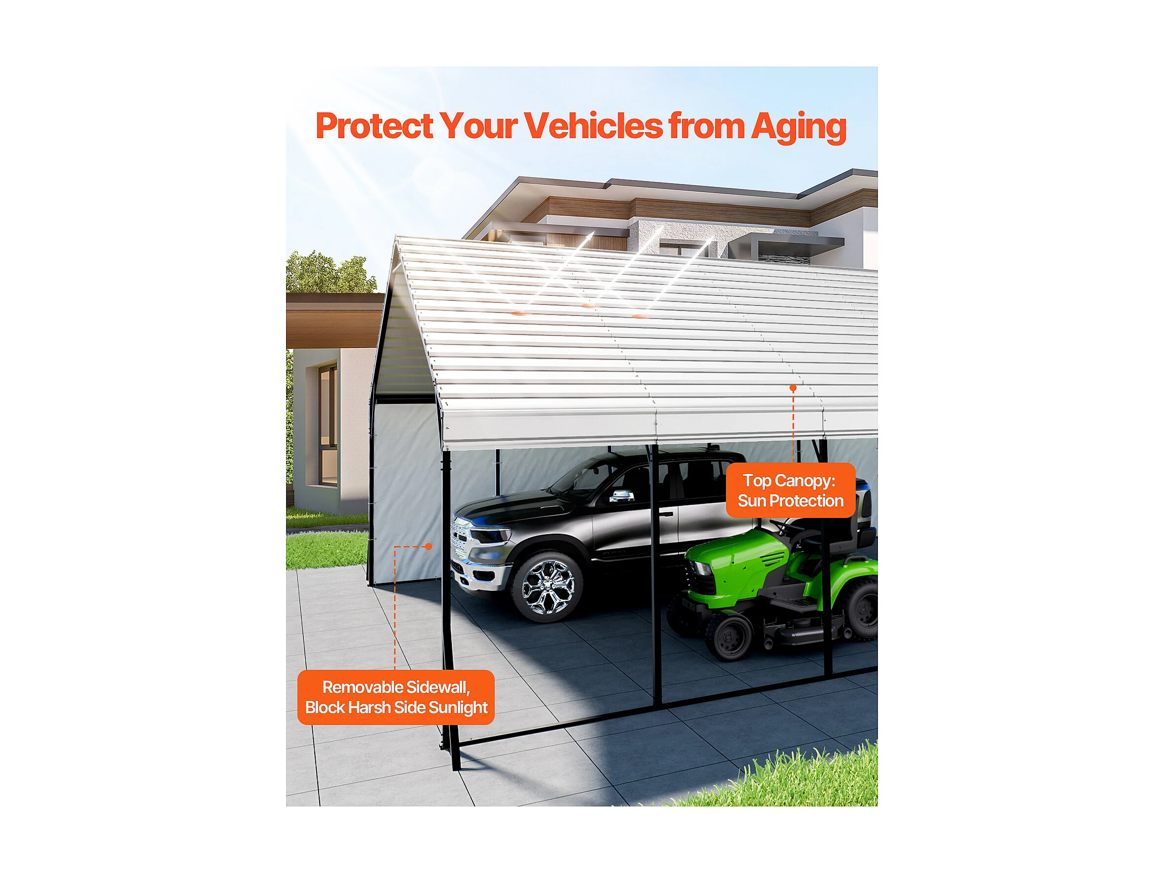 Carport SucceBuy, 5,8 x 7,45 m, Cochera Metálica Resistente, Refugio de Garaje Exterior con Estructura de Acero, para Camionetas, Barcos, Camiones y Tractores