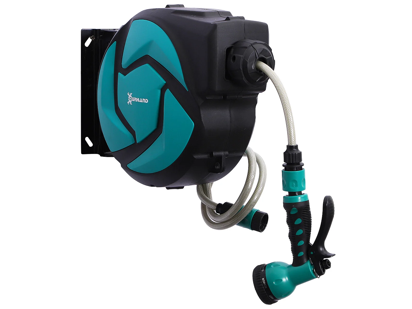 Carrete de Manguera Retráctil SucceBuy de 115' x 1/2" SucceBuy, Giratorio 180°, Montaje en Pared