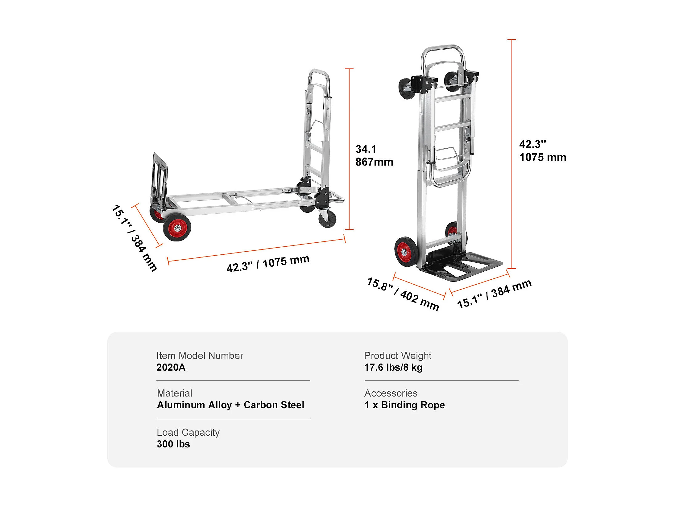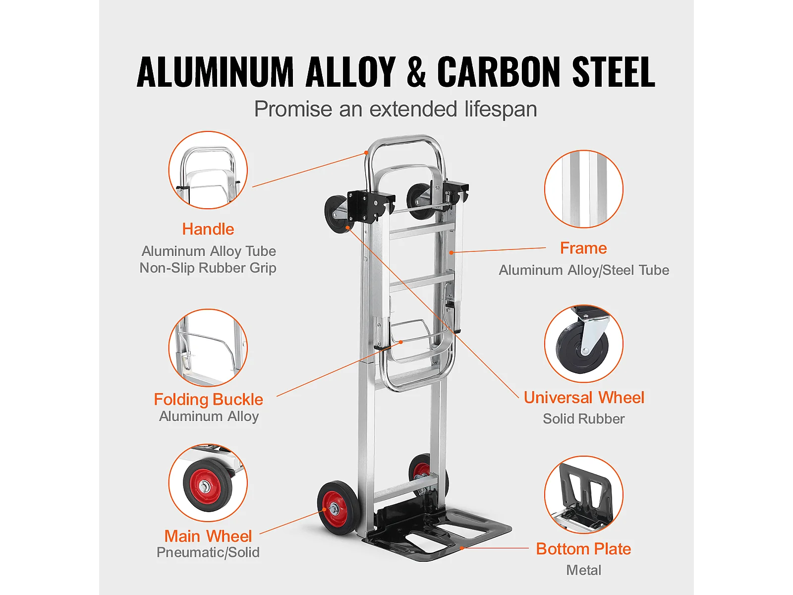 Carretilla Plegable de Aluminio 2 En 1 SucceBuy con Capacidad de 400 lb