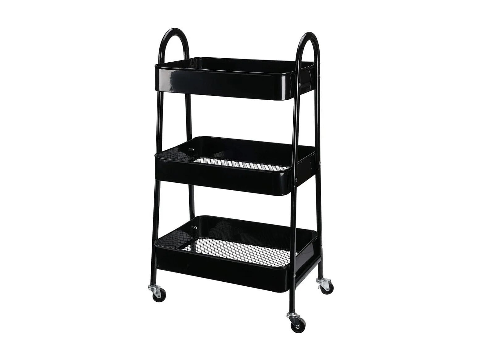 Carrito auxiliar 3 niveles con ruedas + asas negro 79,5x31,5x44 cm
