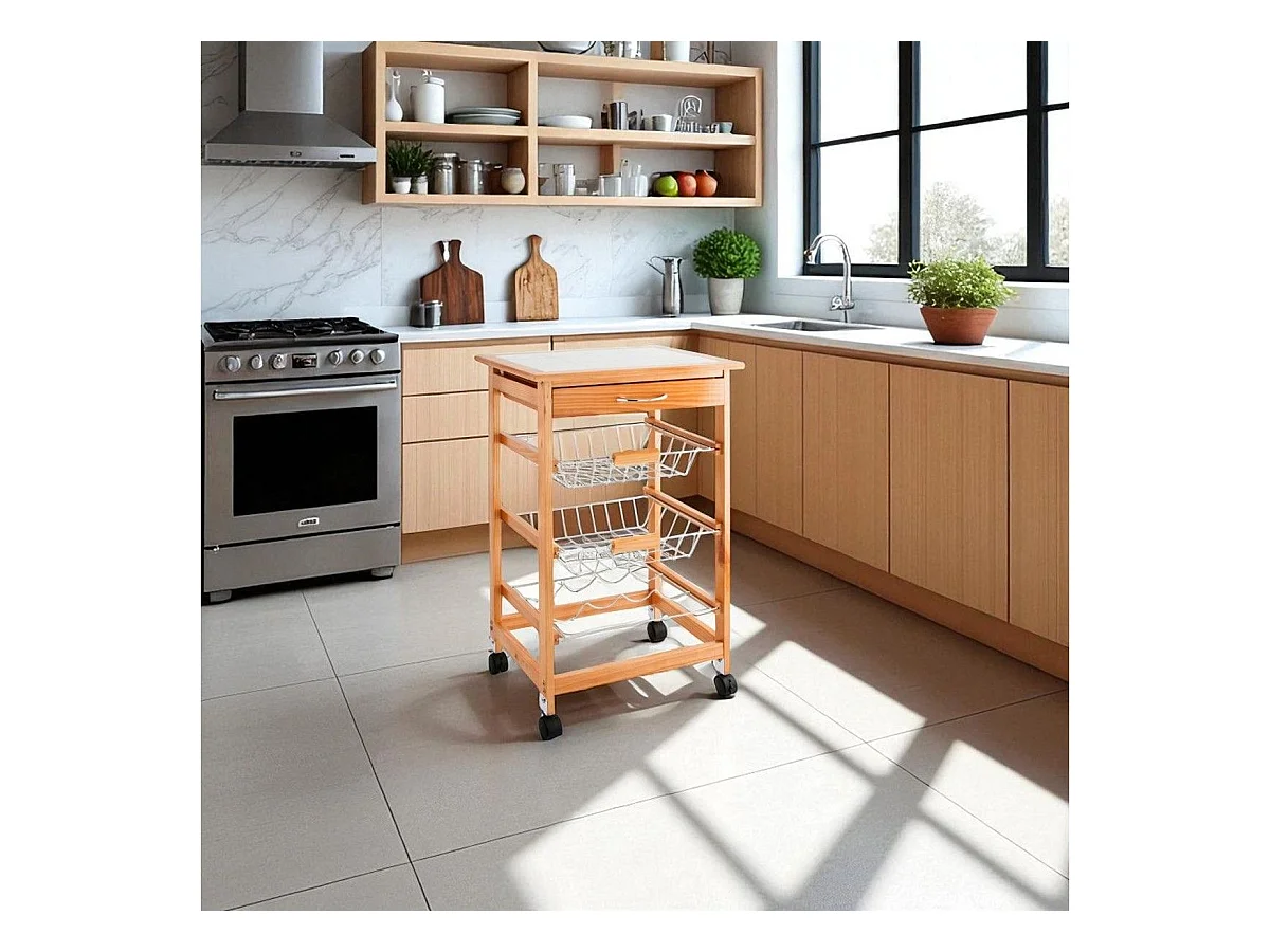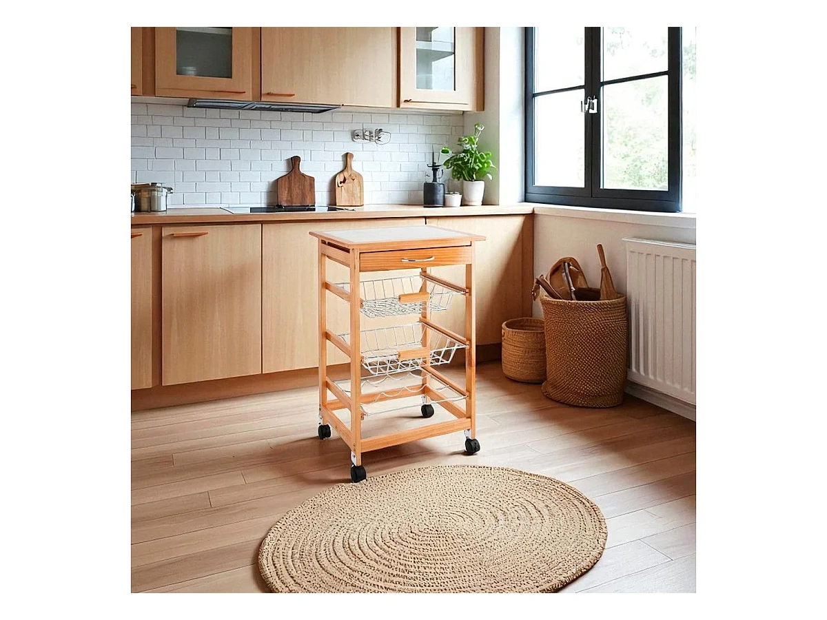 Carrito de cocina MONZA madera maciza de pino 84x40x88,5 cm