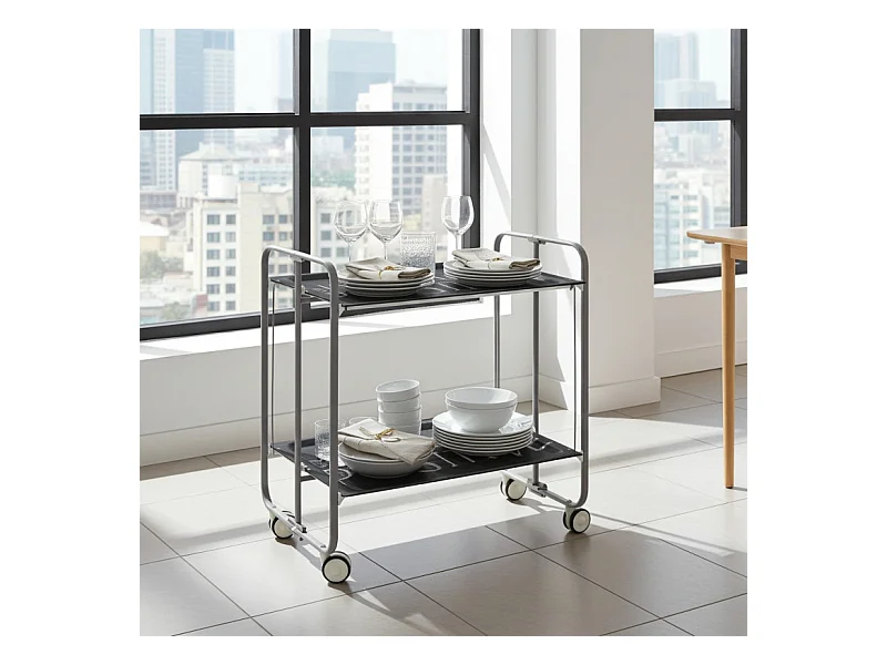 DON HIERRO - Carrito auxiliar plegable BAUHAUS cromado con ruedas – 2 niveles y 4 posiciones-Gris