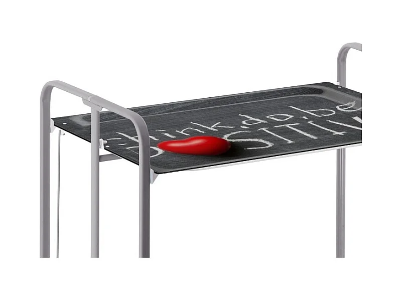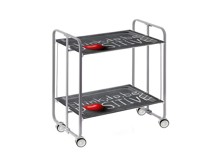 Carrito auxiliar plegable con ruedas - Estructura metálica gris, 2 estantes laminados Decorado "Think, do, be positive" – 72*66*43 cm - BAUHAUS