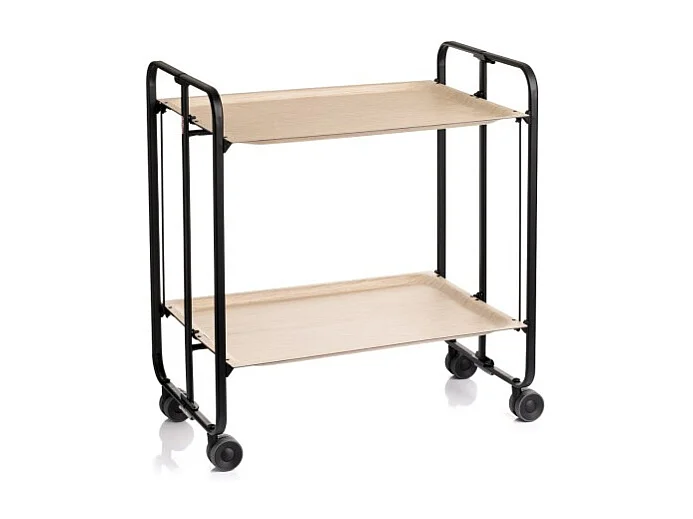 Carrito auxiliar plegable con ruedas - Estructura metálica negra, 2 estantes laminados color Haya – 72*66*43 cm - BAUHAUS