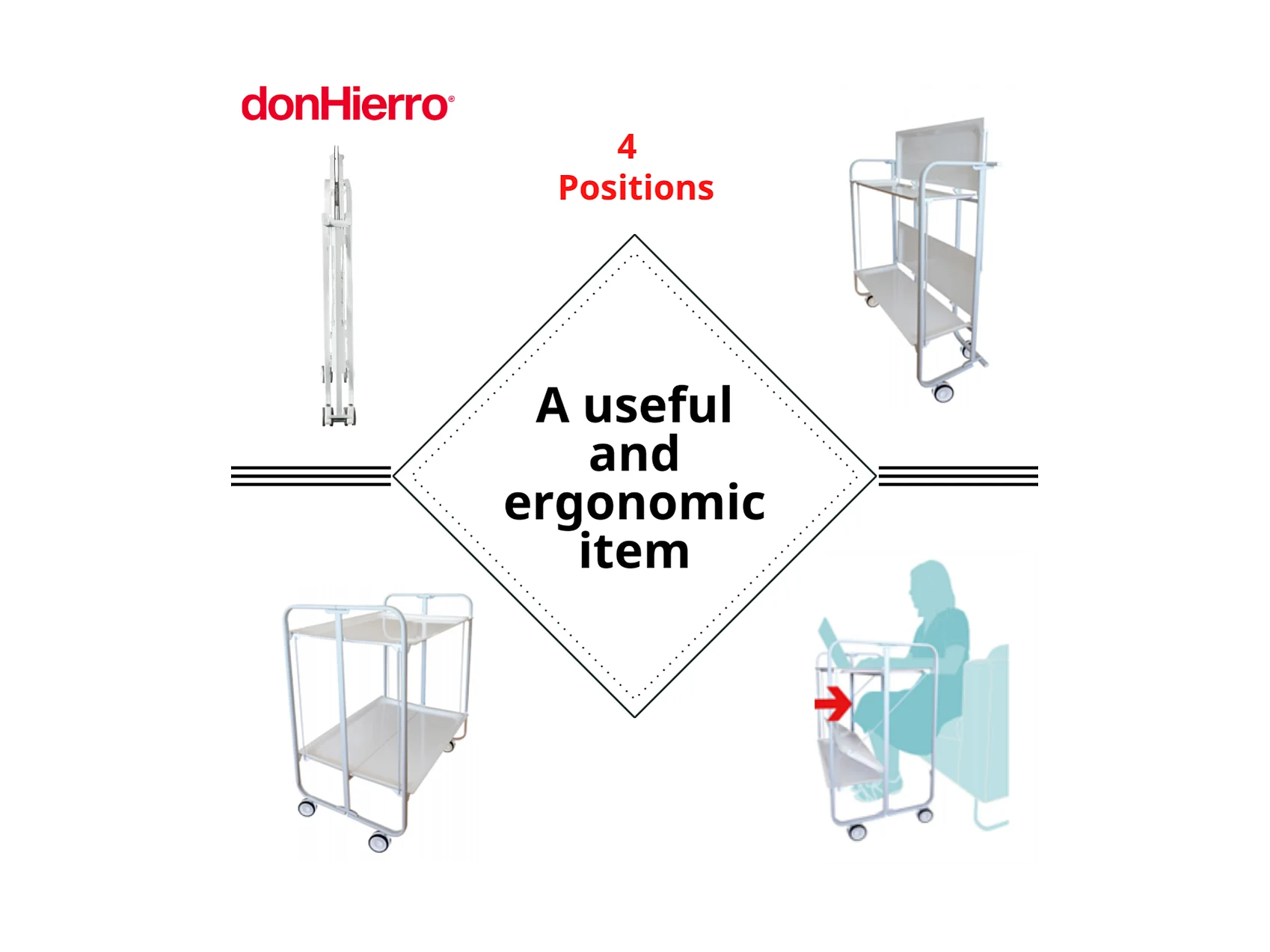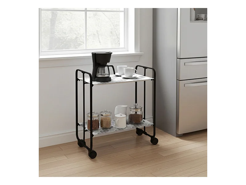 Carrito auxiliar plegable con ruedas - Estructura metálica negra, 2 estantes laminados Decorado Gris claro y gris oscuro – 72*66*43 cm - BAUHAUS