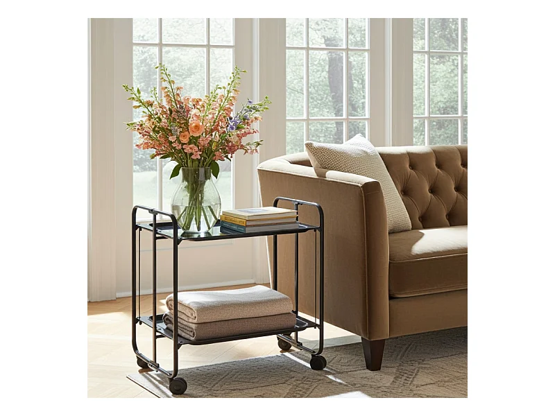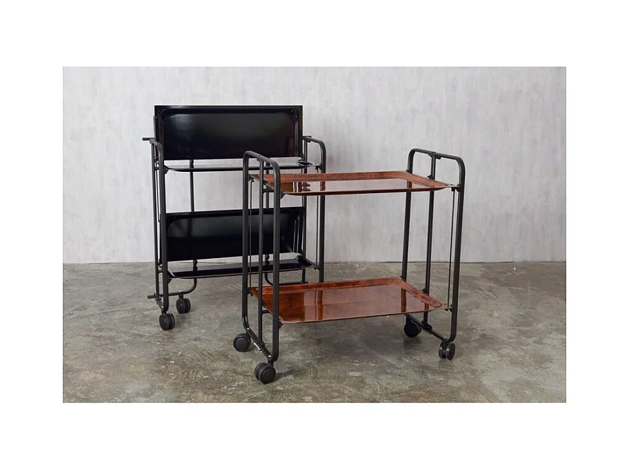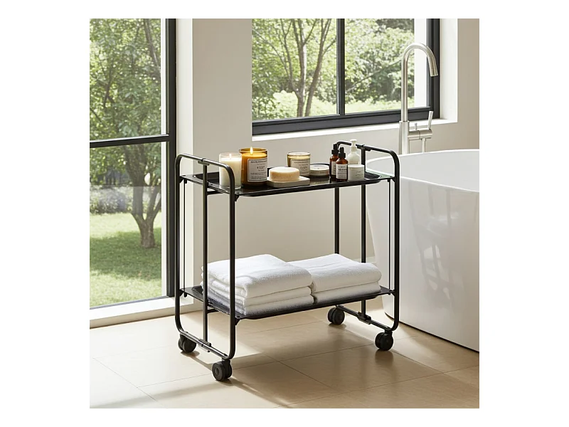 Carrito auxiliar plegable con ruedas - Estructura metálica negra, 2 estantes laminados negros – 72*66*43 cm - BAUHAUS