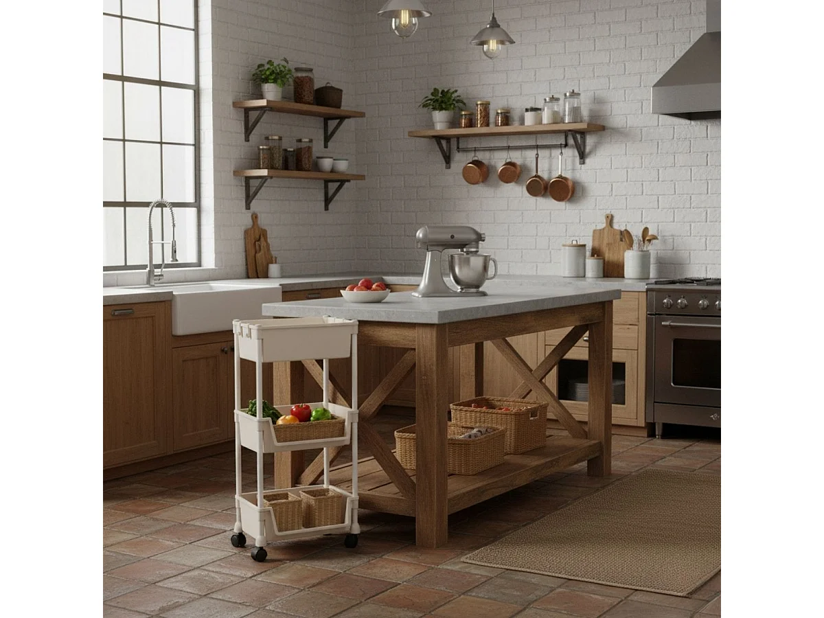 Carrito auxiliar Reddie con 3 niveles y ruedas beige 74,7x35x26,5 cm