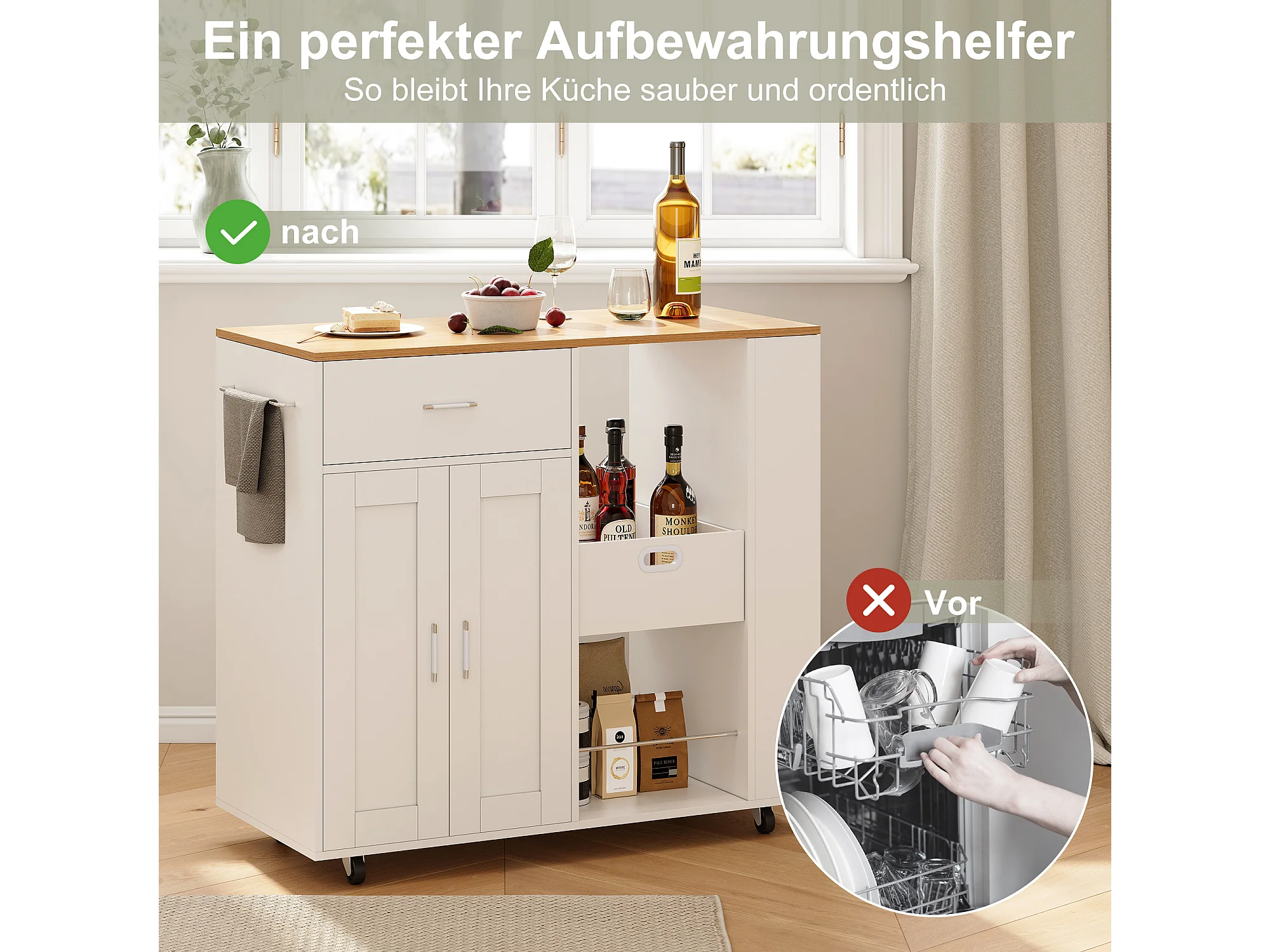 Carrito con ruedas para almacenamiento de cocina, especiero de 3 niveles, estante abierto, blanco