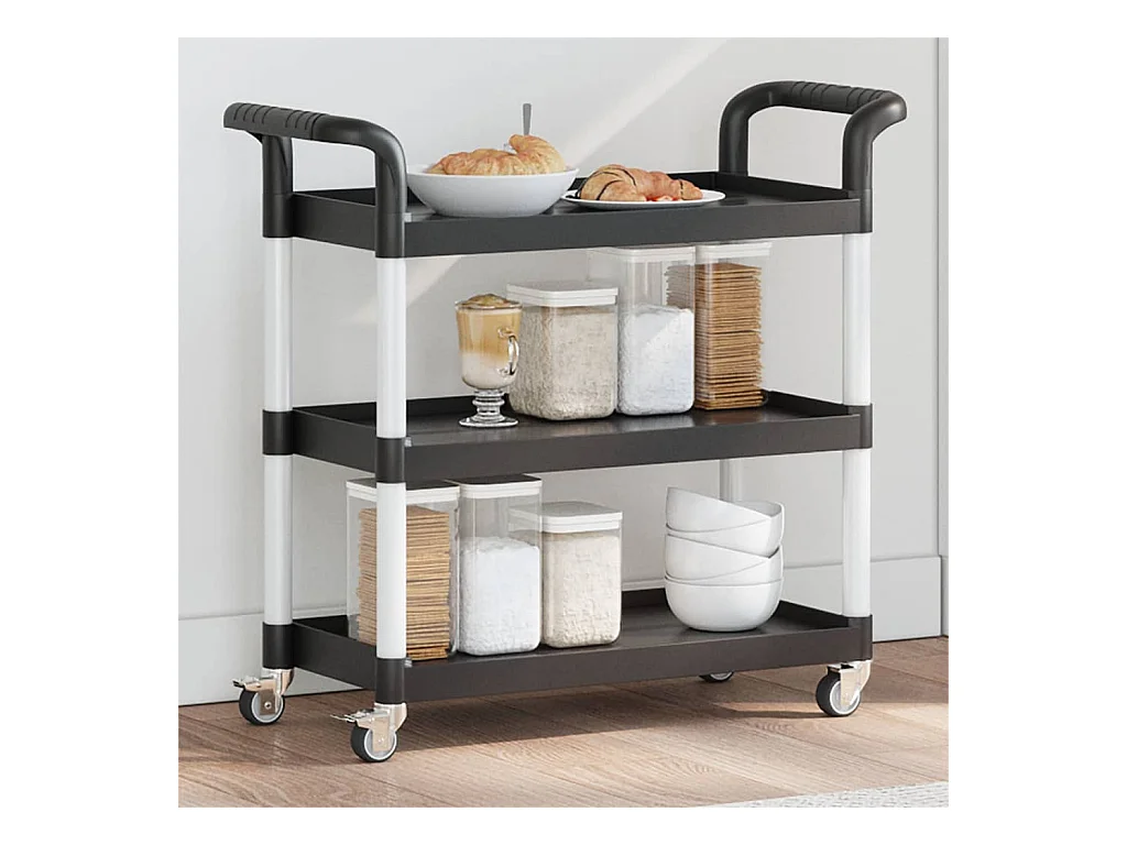 Carrito auxiliar con ruedas 3 estantes negro 78x44x32 cm