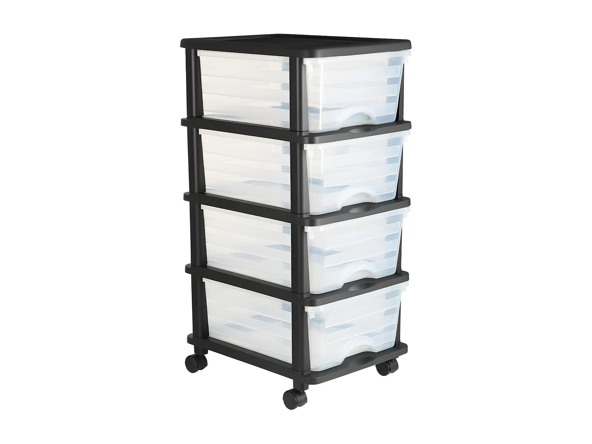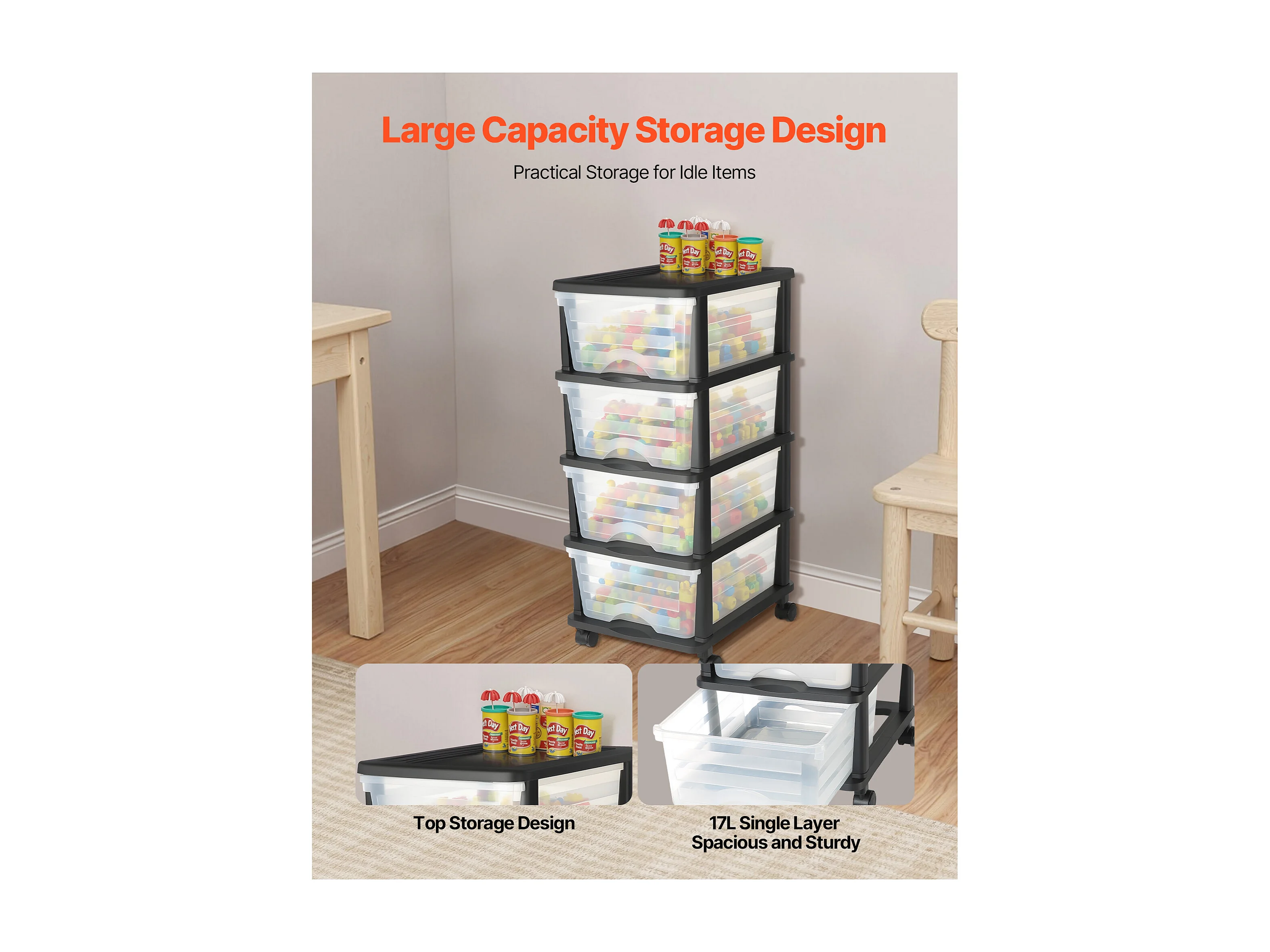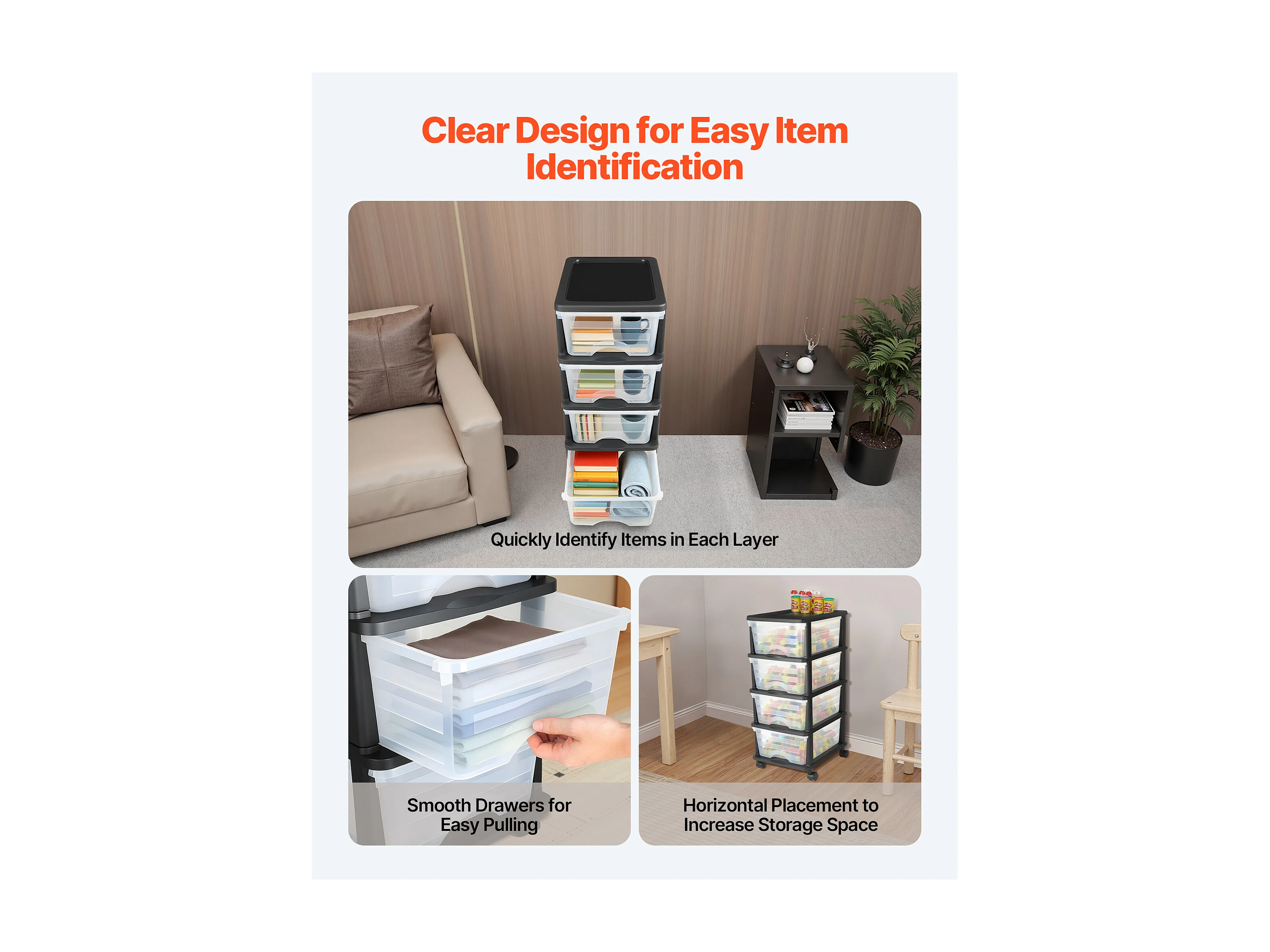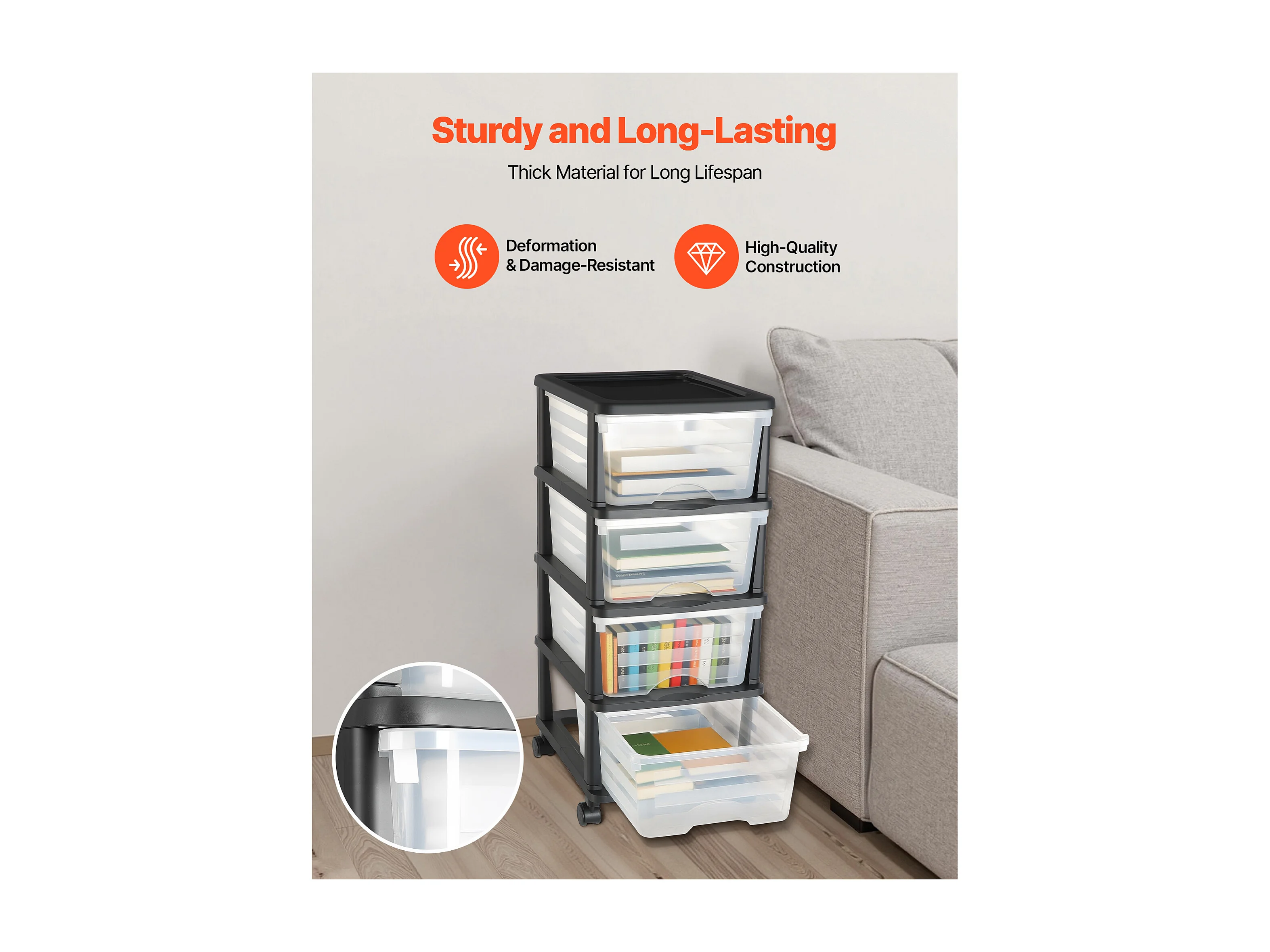 Carrito de Almacenamiento SucceBuy con 4 Cajones de Plástico, Torre de Almacenamiento con Ruedas, Bandeja Transparente para Suministros de Oficina