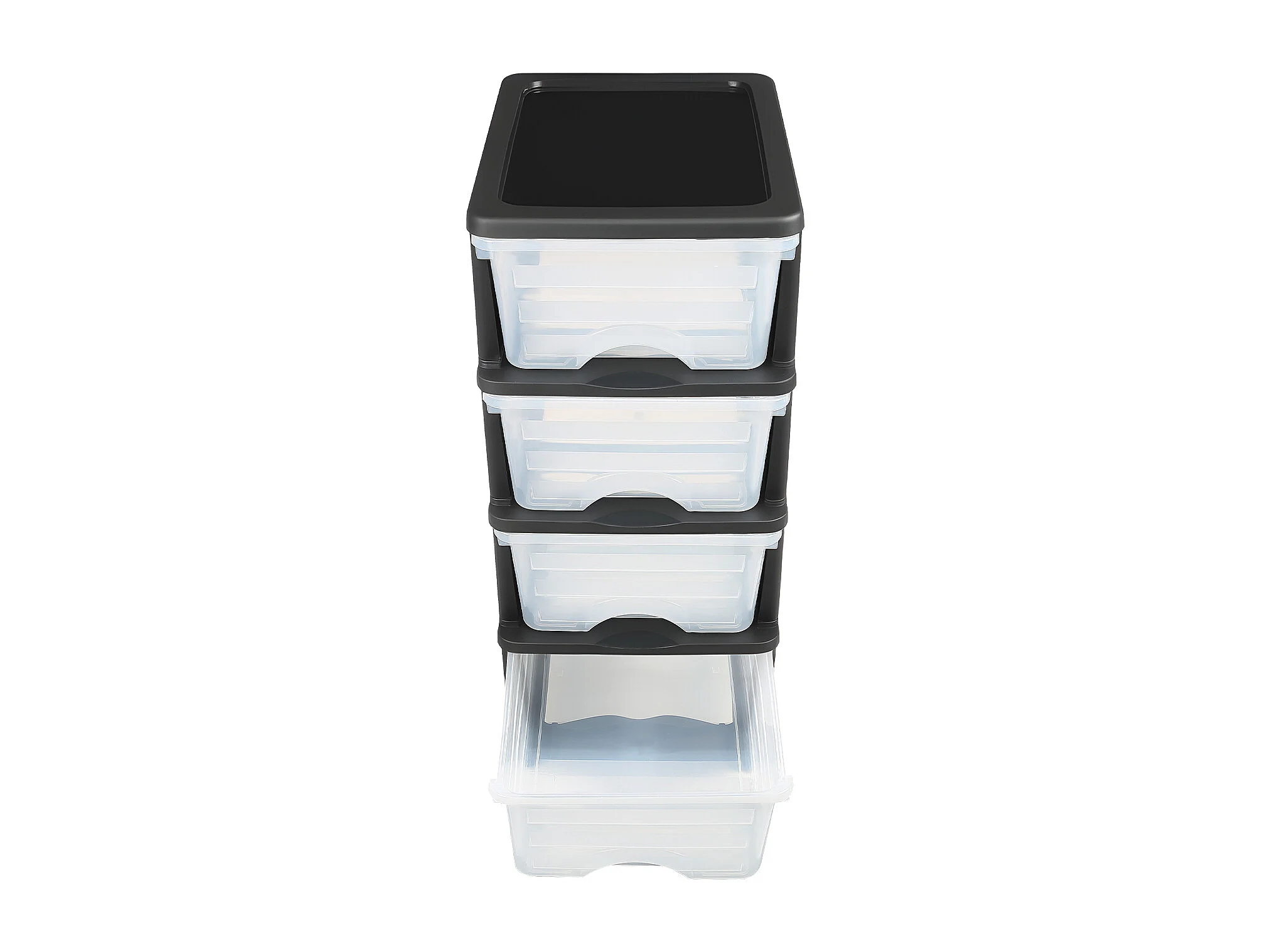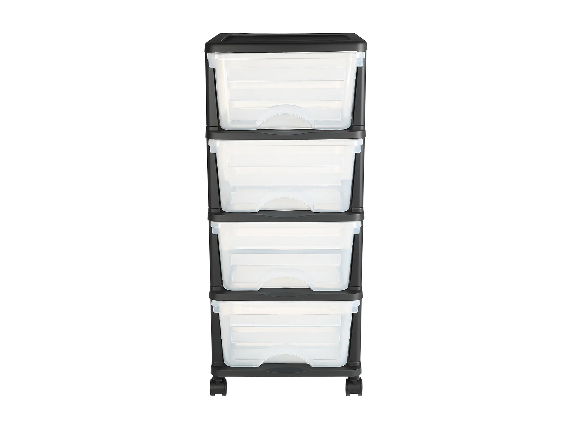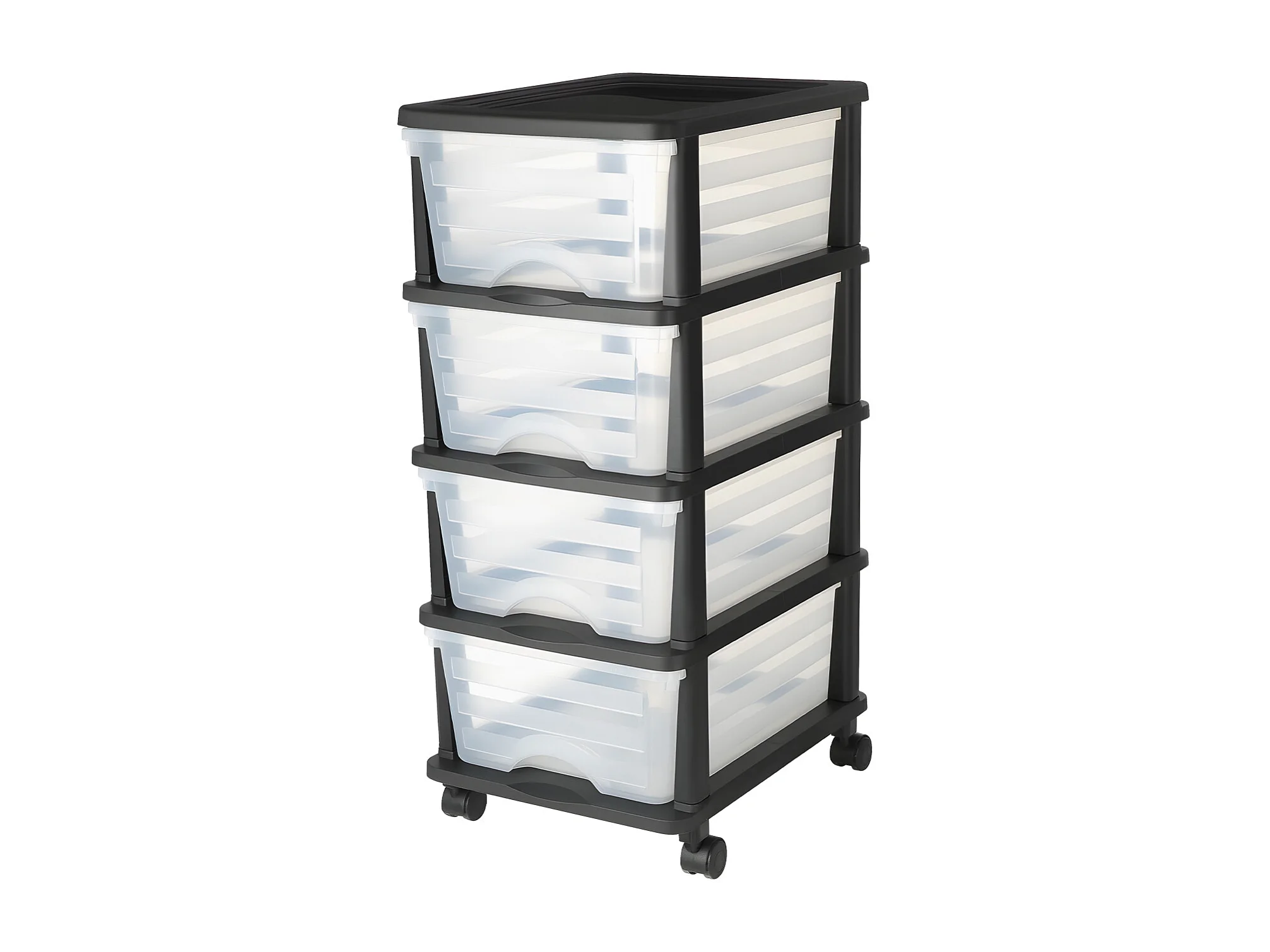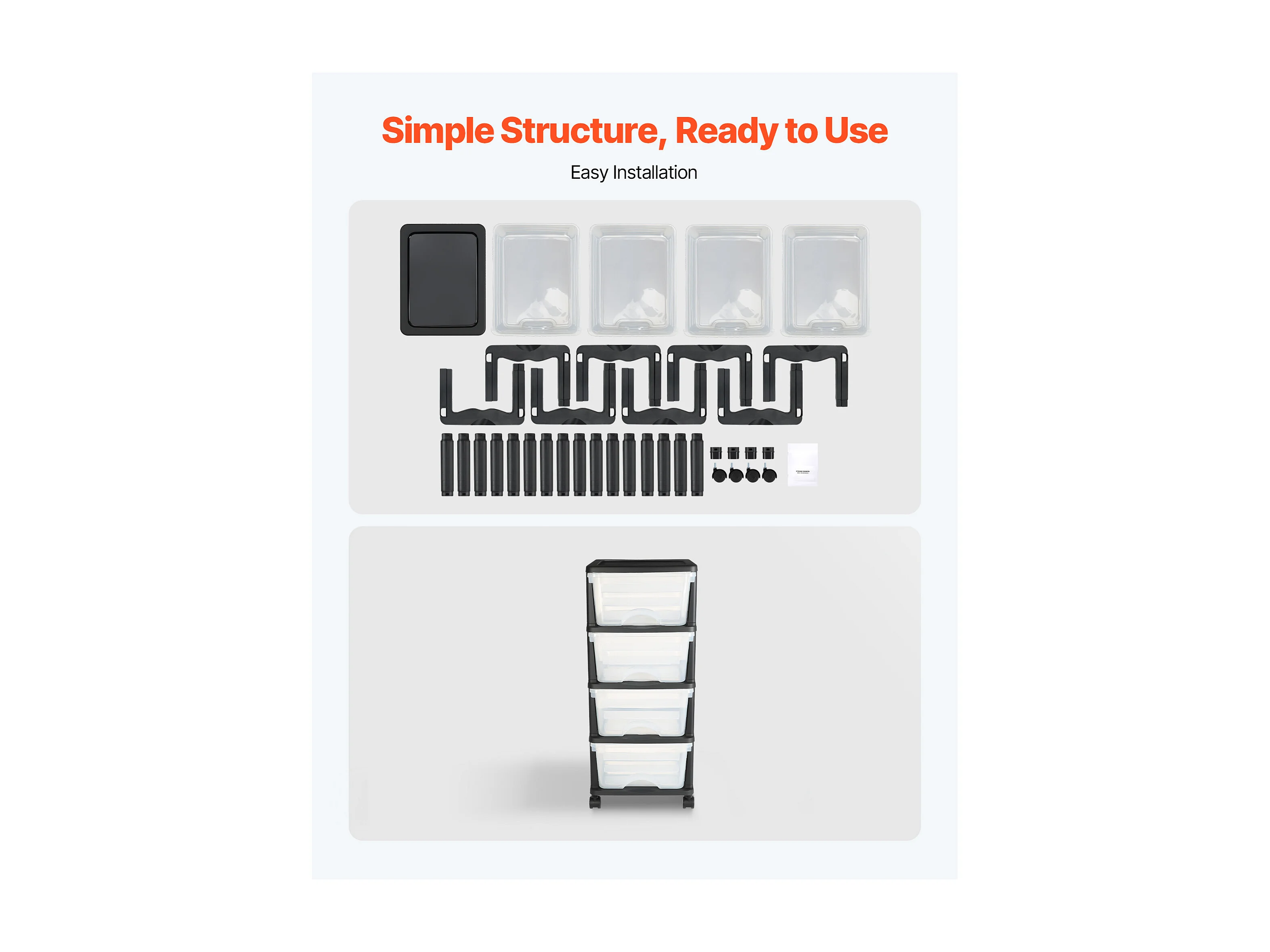 Carrito de Almacenamiento SucceBuy con 4 Cajones de Plástico, Torre de Almacenamiento con Ruedas, Bandeja Transparente para Suministros de Oficina