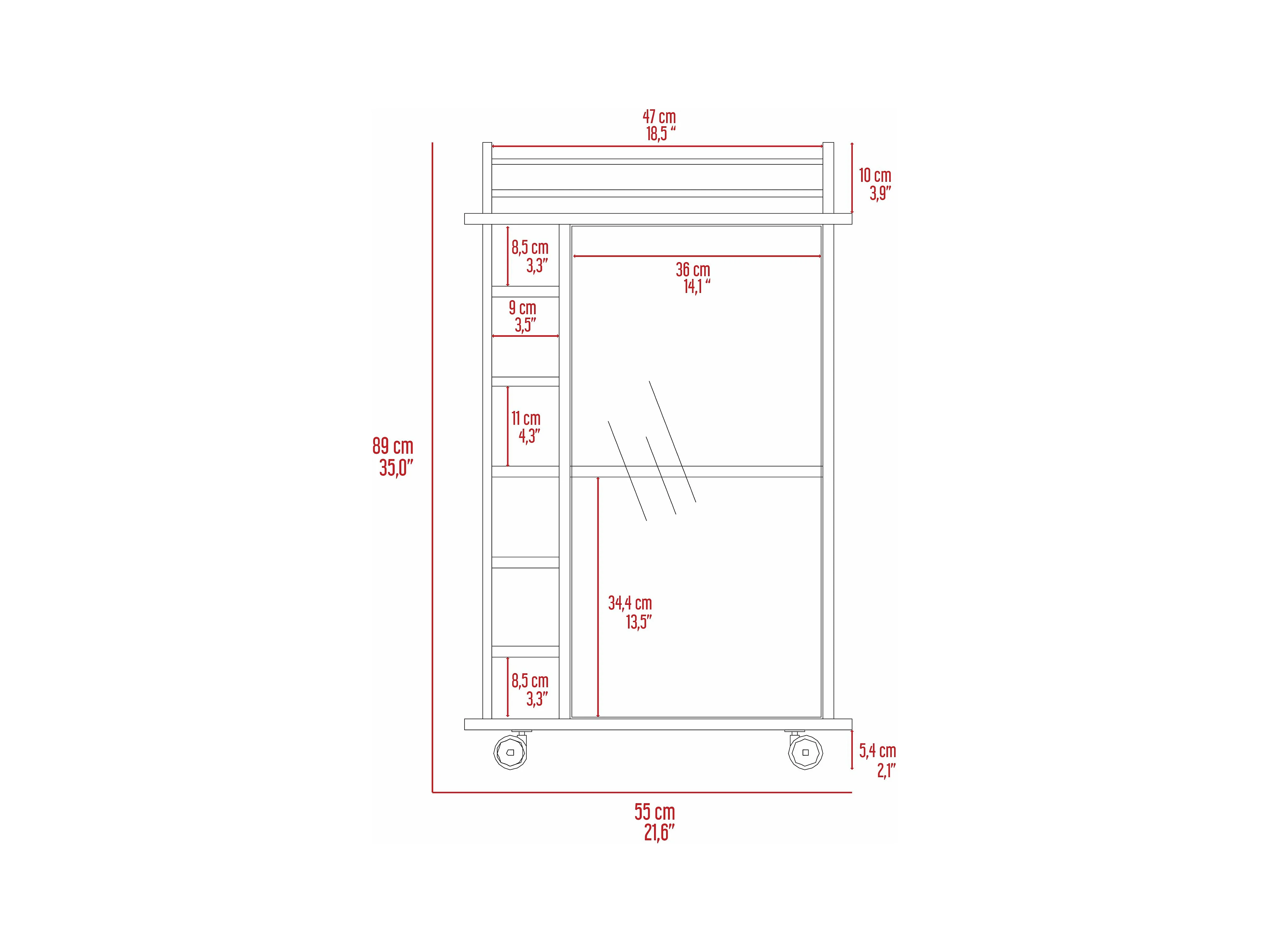 Carrito de Bar Dukat en melamina con 6 botelleros , 3 estantes y 4 ruedas , blanco , 89 cm X 55 cm X 41.5 cm