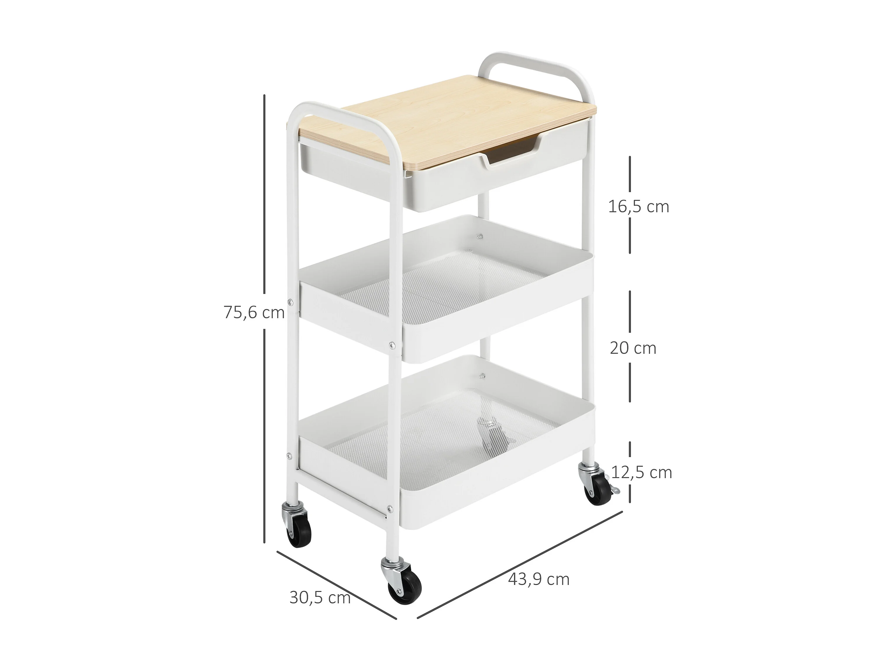 Carrito de cocina blanco 43.9x30.5x75.6 cm HOMCOM