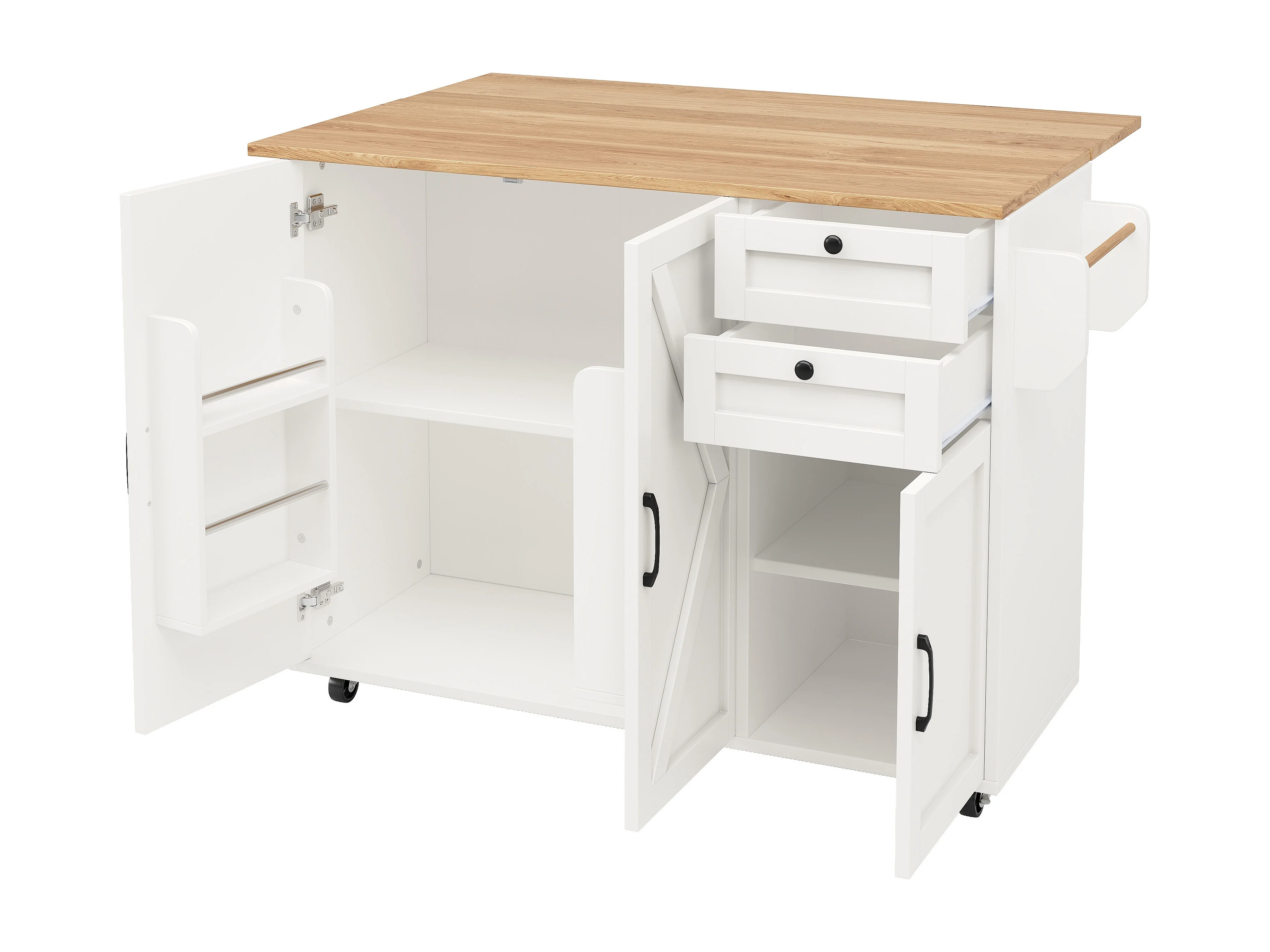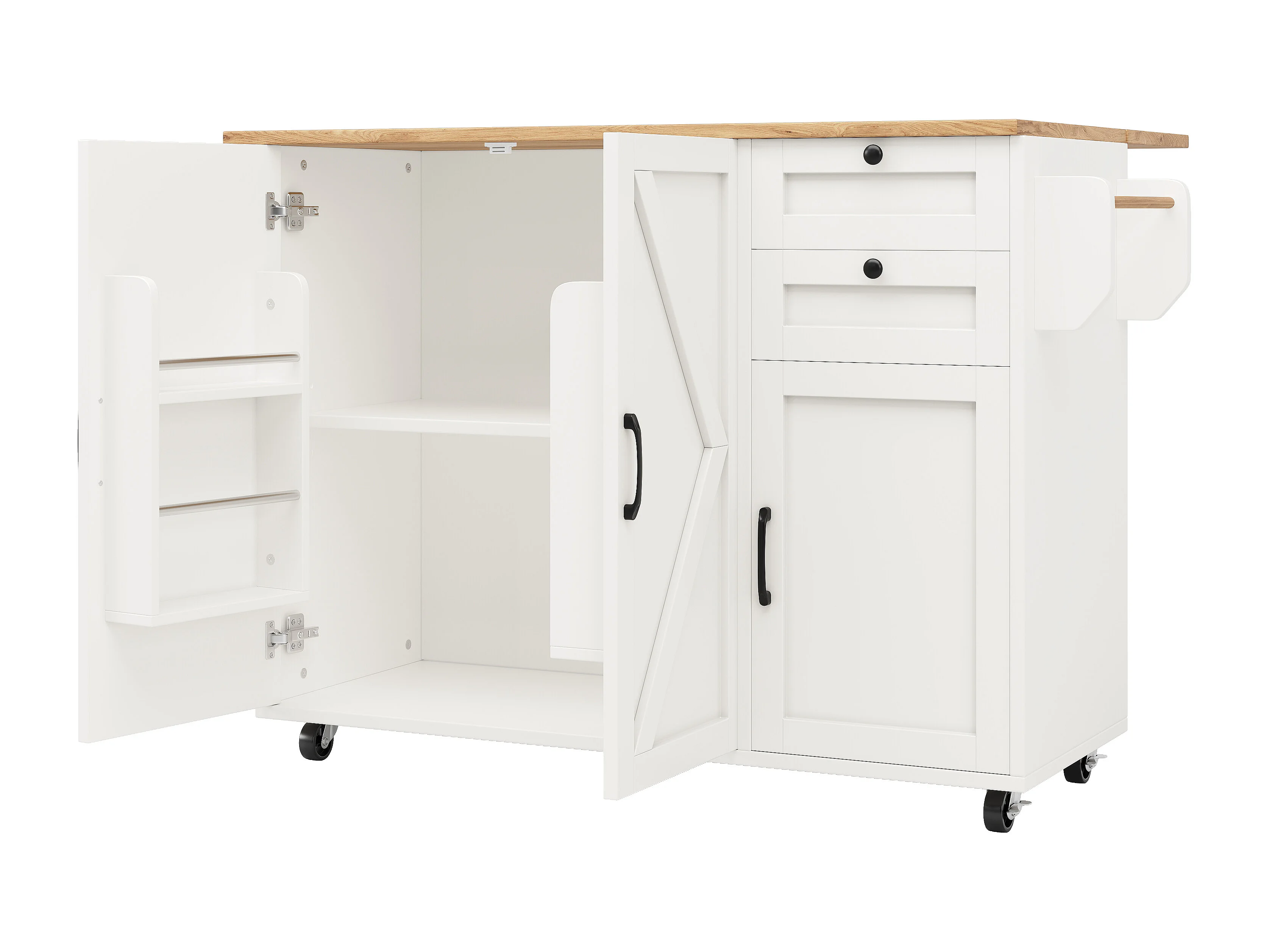 Carrito de cocina blanco - Isla de cocina móvil con especiero y 3 puertas - toallero y cajón - para cocina