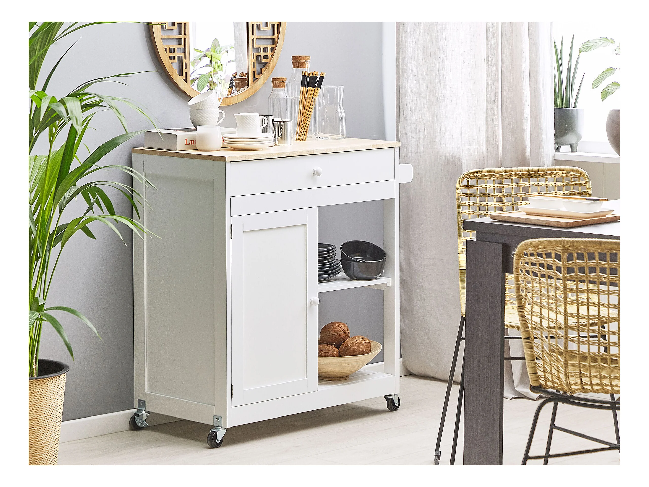 Carrito Auxiliar de Cocina con 2 Puertas 1 Cajón 1 Toallero y 4 Ruedas Carro de Servir Multiusos Armario de Cocina 74.5x 45,5 x 91 cm Blanco FKW119-WN SoBuy ES