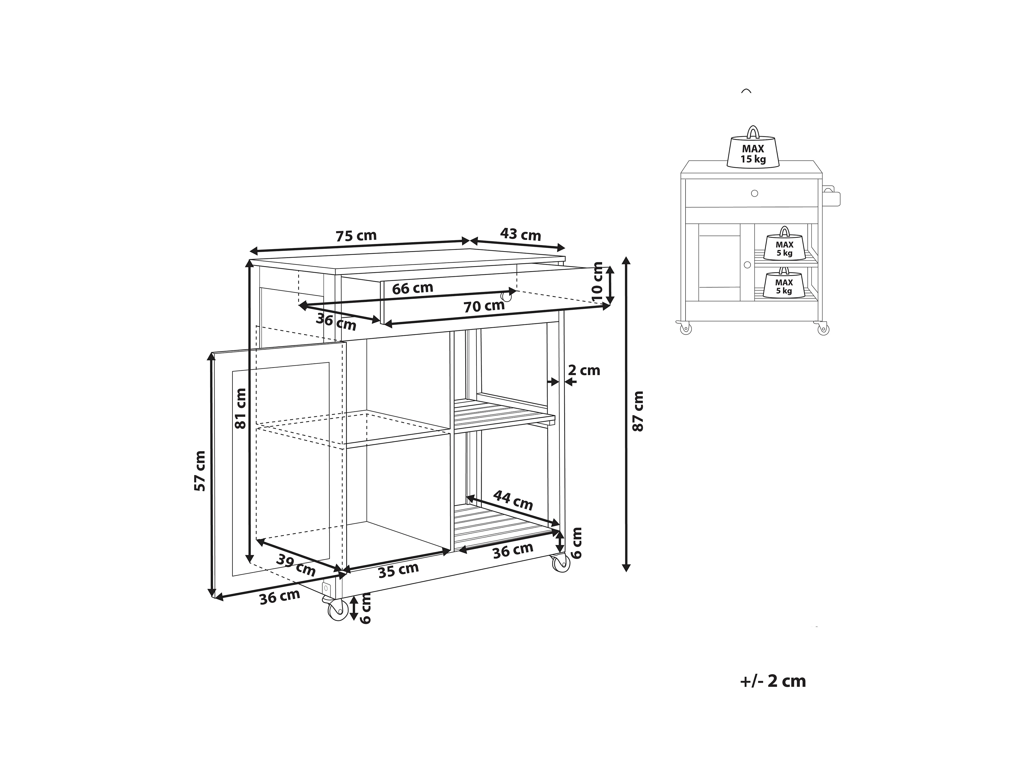 Carrito de cocina blanco 37x37x76 cm HOMCOM