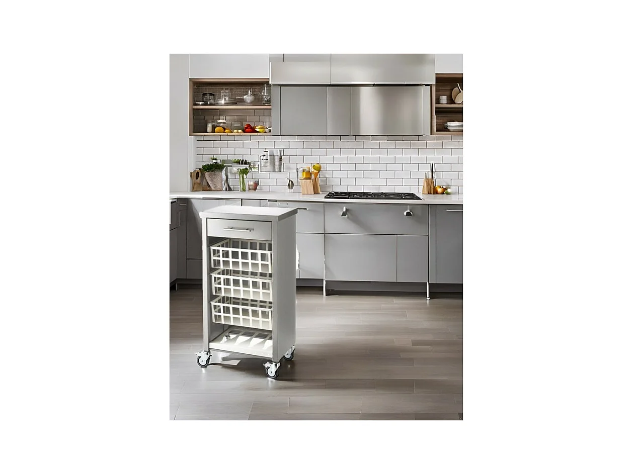 Carrito de cocina, verdulero ALESIA, 1 cajón y 3 cestas. Color Aluminio - Haya