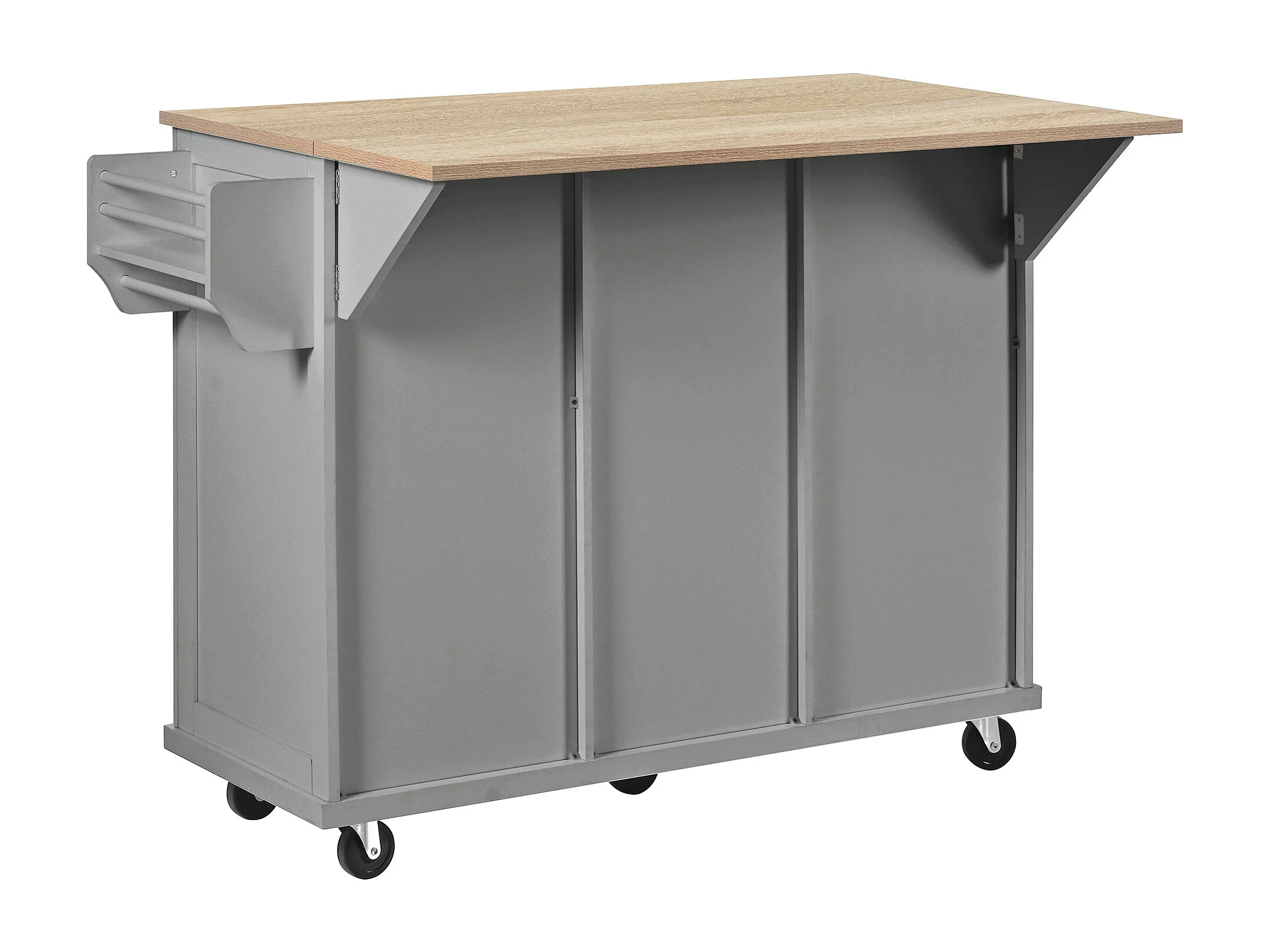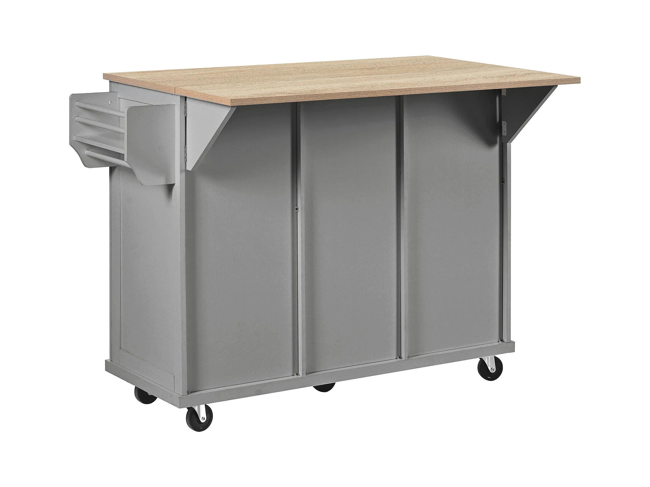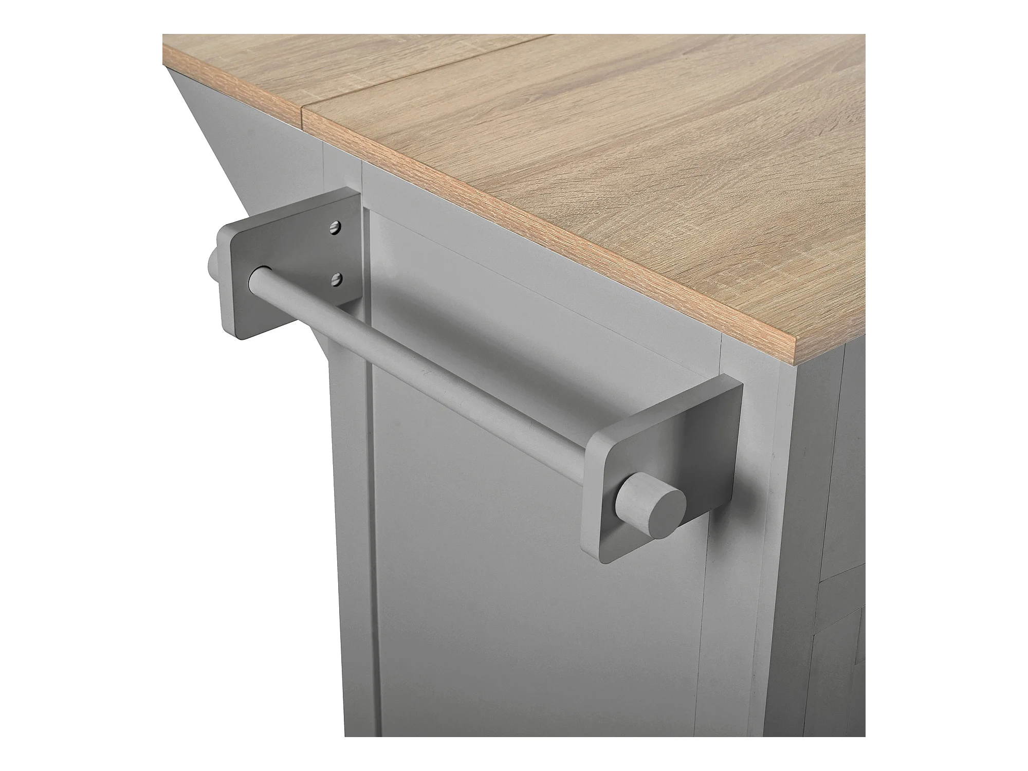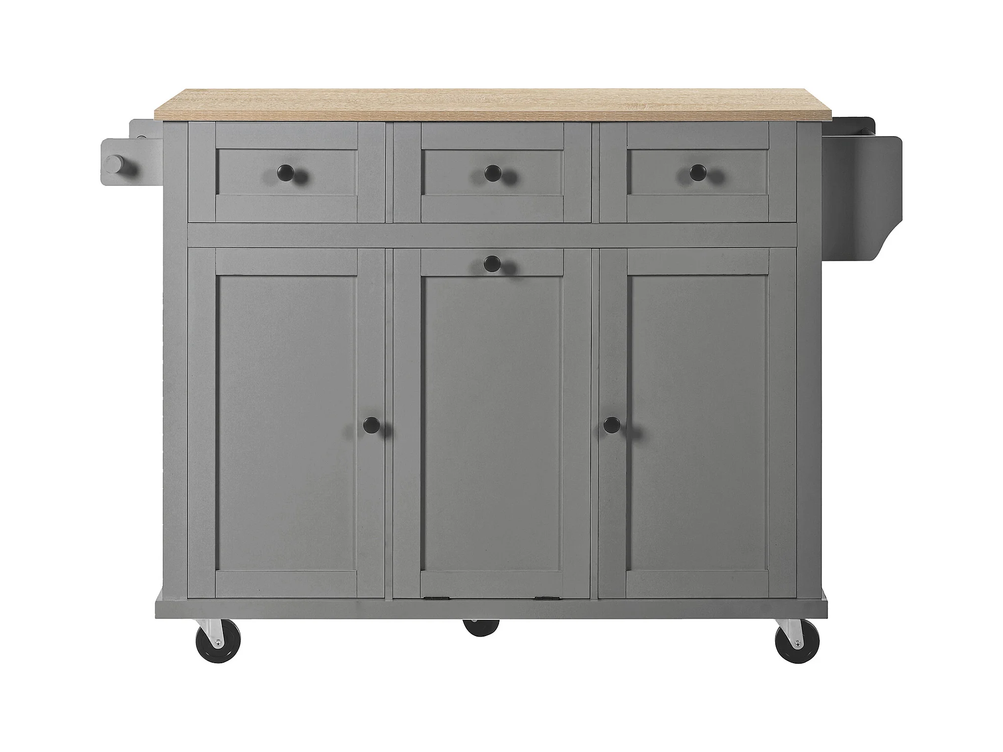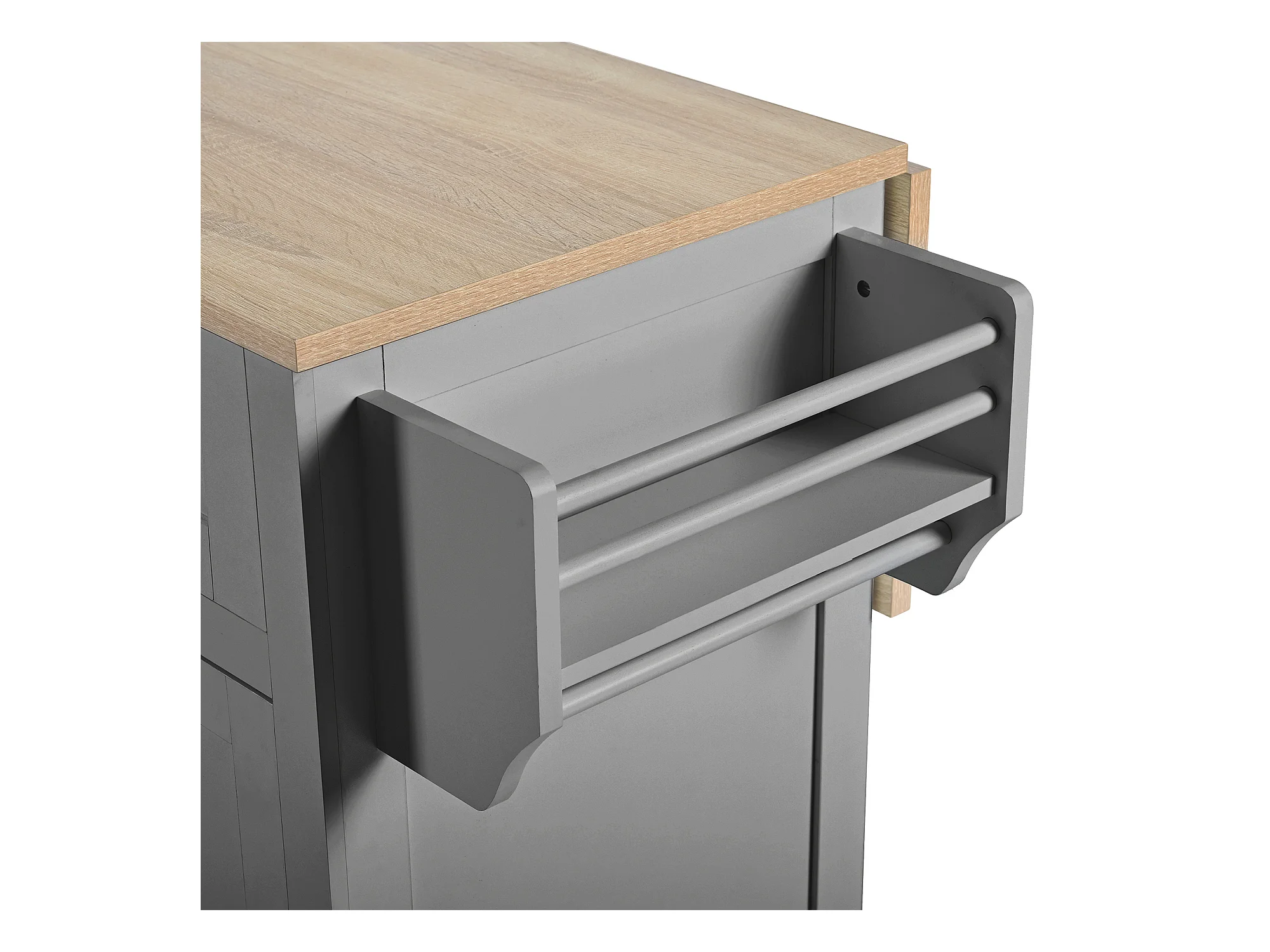 Carrito de cocina con 3 puertas y 3 cajones - Isla de cocina central con compartimento para basura y especiero - gris - para cocinas
