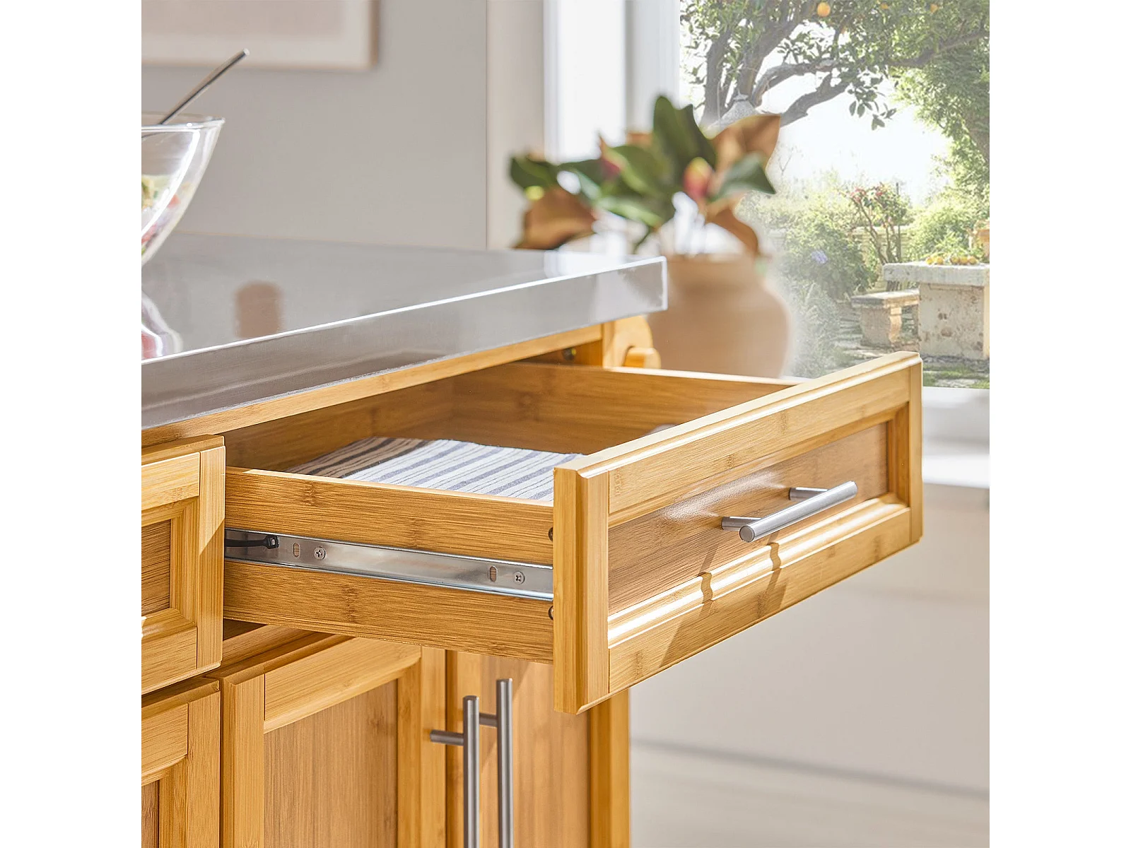 Carrito de Cocina con Piso de Acero,con Tablero Extensible, Carrito de Servir de bambú,L115 x P46 x H92cm FKW69-N SoBuy ES