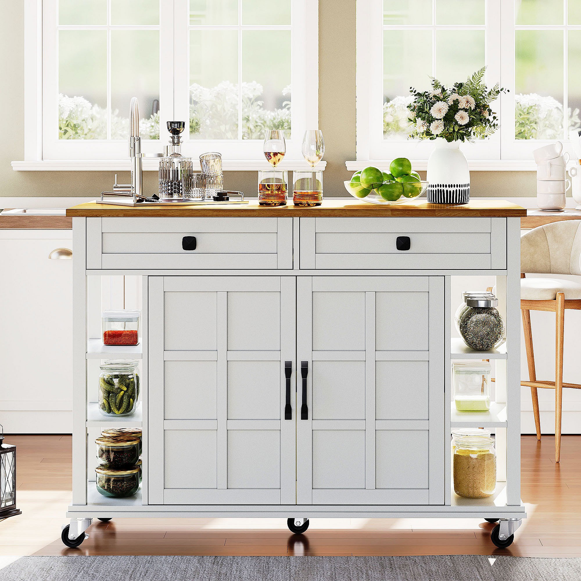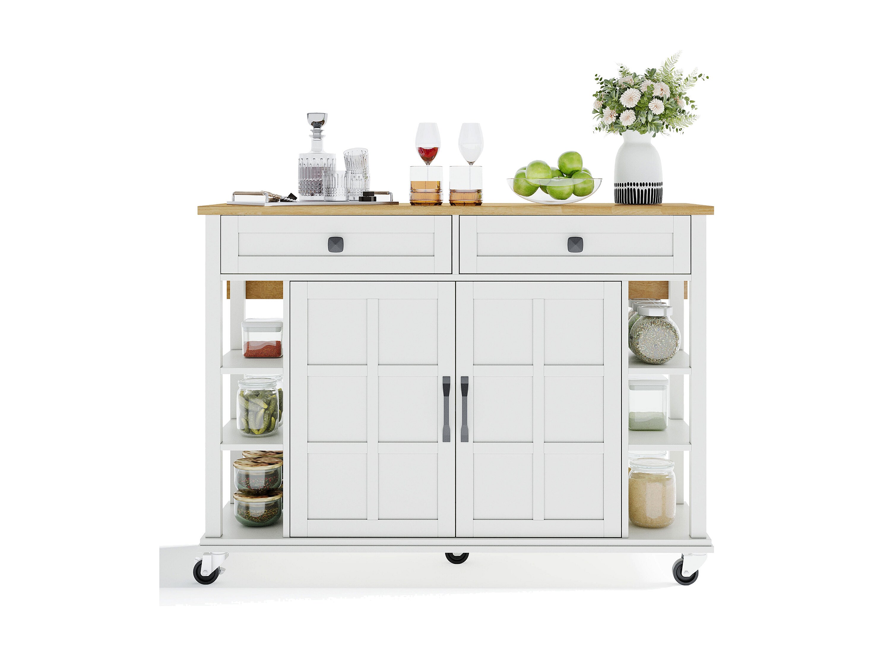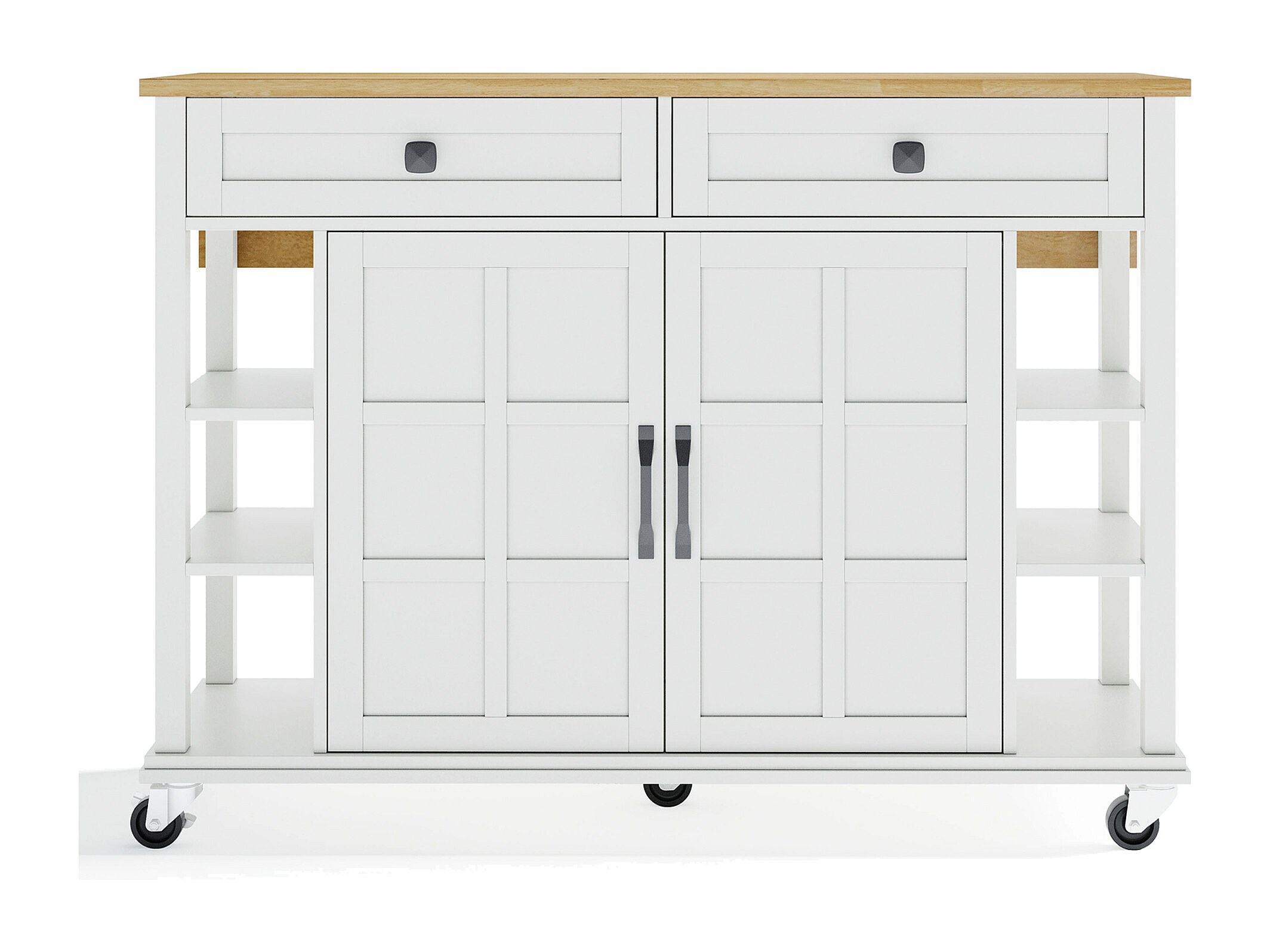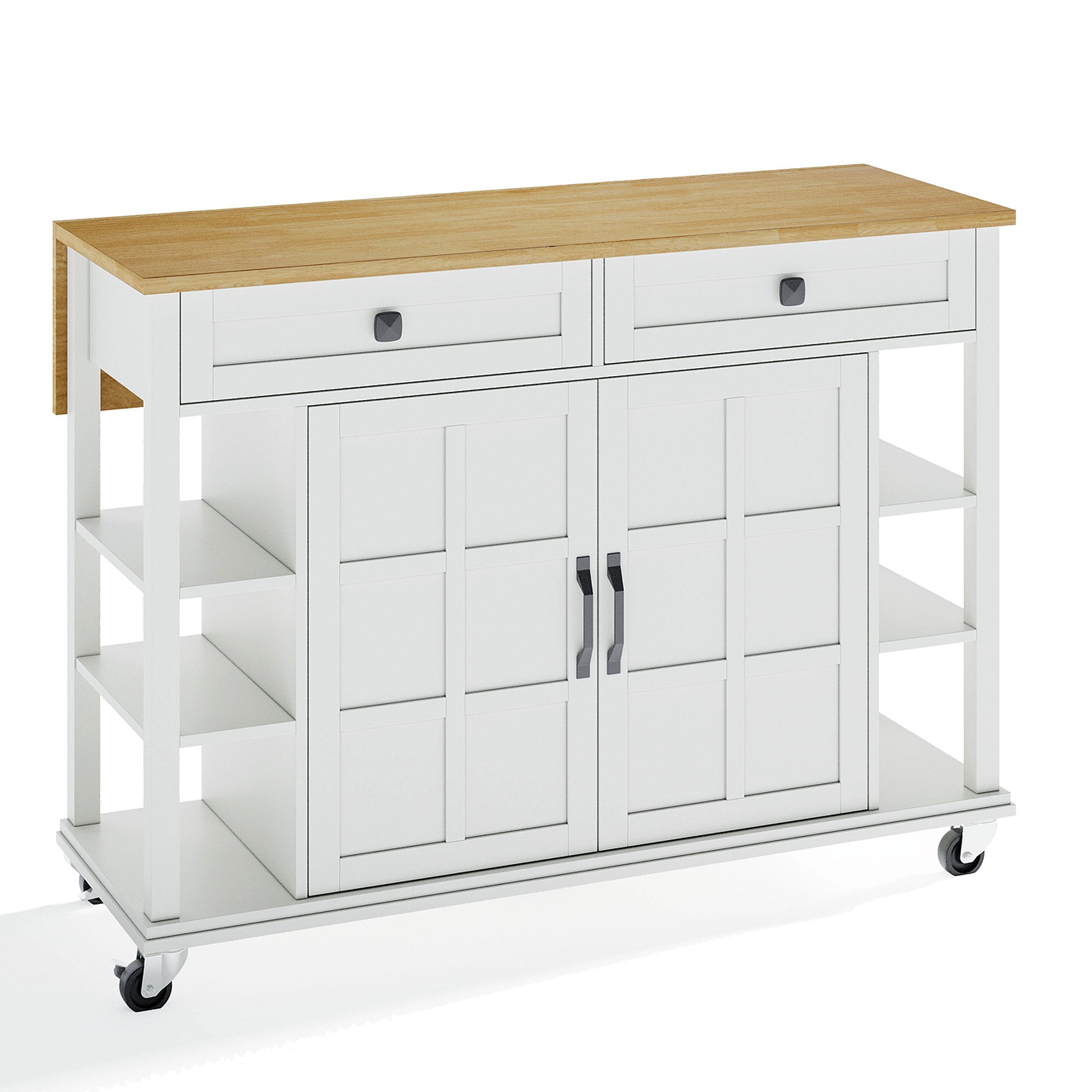 Carrito de cocina con tapa plegable de madera, 2 puertas y 2 cajones - blanco