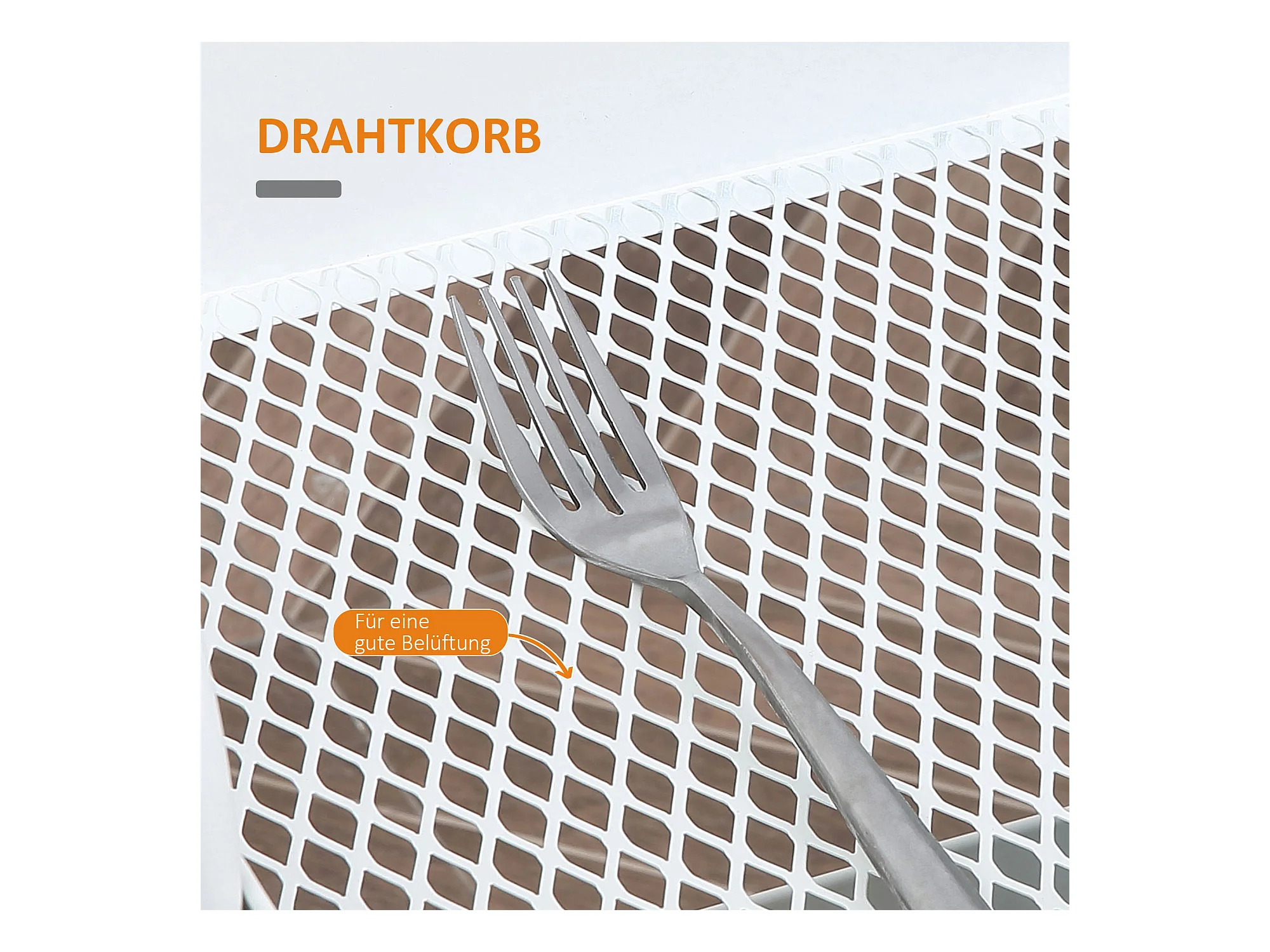 Carrito de cocina de 3 niveles con cesta y tapa, metal, blanco (53,5 x 31 x 79,4 cm)